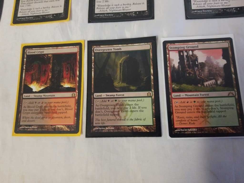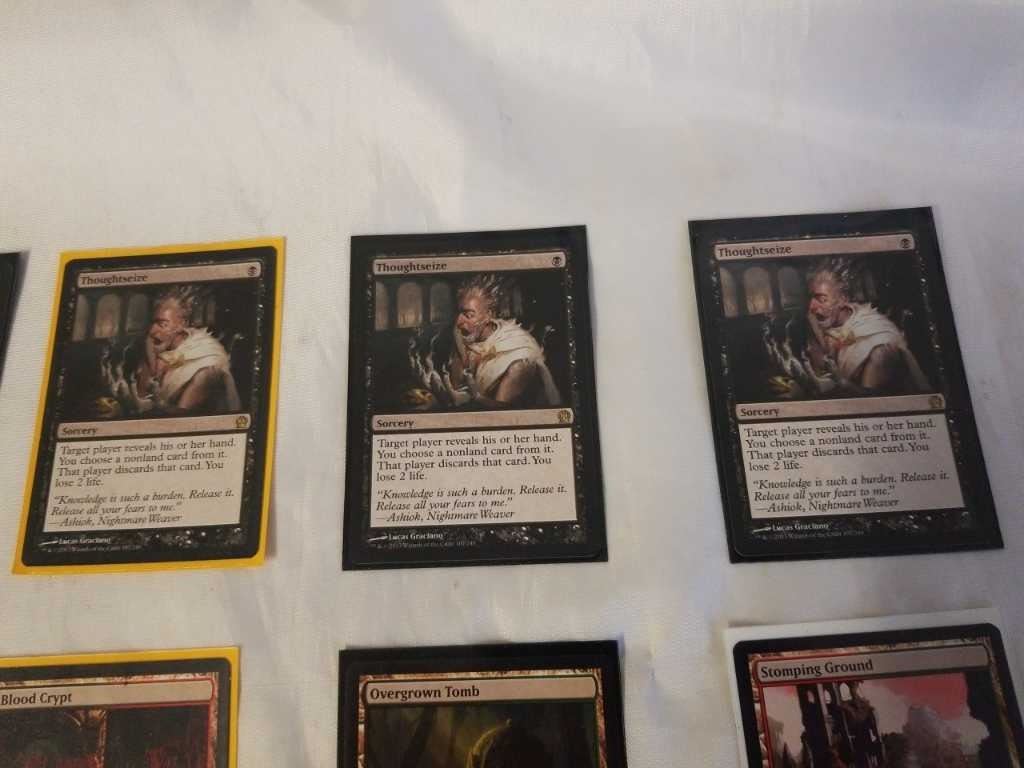 10 RARE MAGIC THE GATHERING CARDS - 5 THOUGHTSEIZE 2 ARE SIGNED, 5 DUAL LANDS BLOOD CRYPT, OVERGROWN TOMB, STOMPING GROUND, 2 BLACKCLEAVE CLIFFS