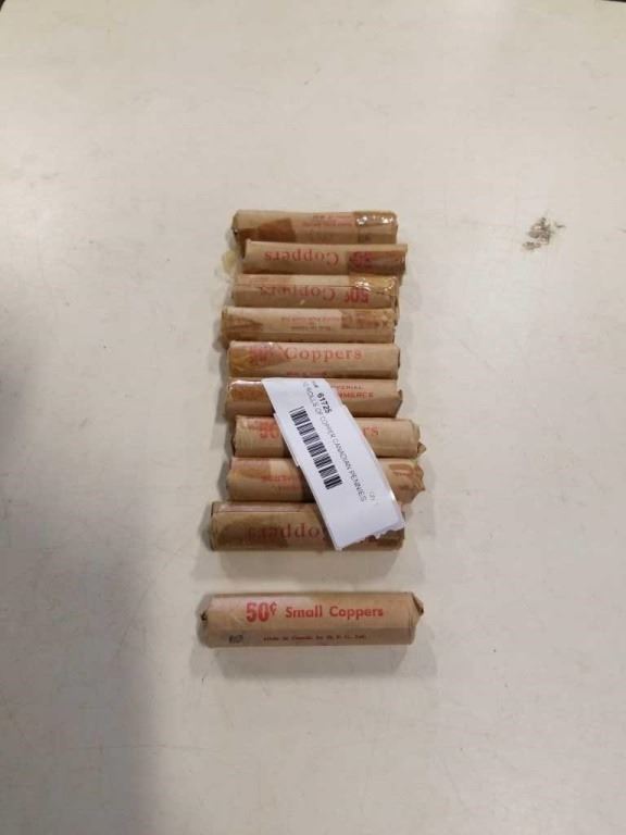 10 ROLLS OF COPPER CANADIAN PENNIES 1940-1960