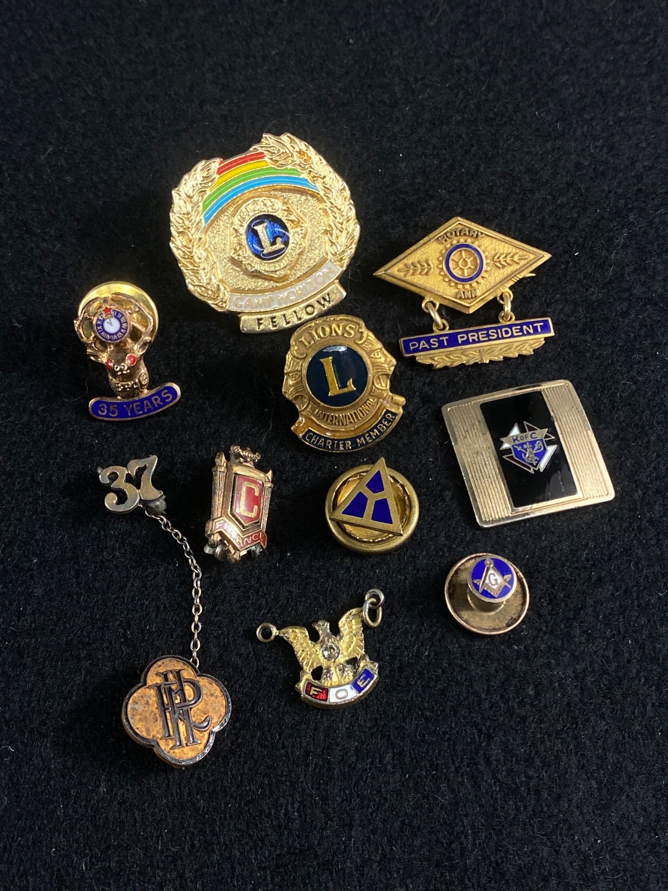 10 Vintage (Most Enamelled) Pins - Lions, Masonic & More