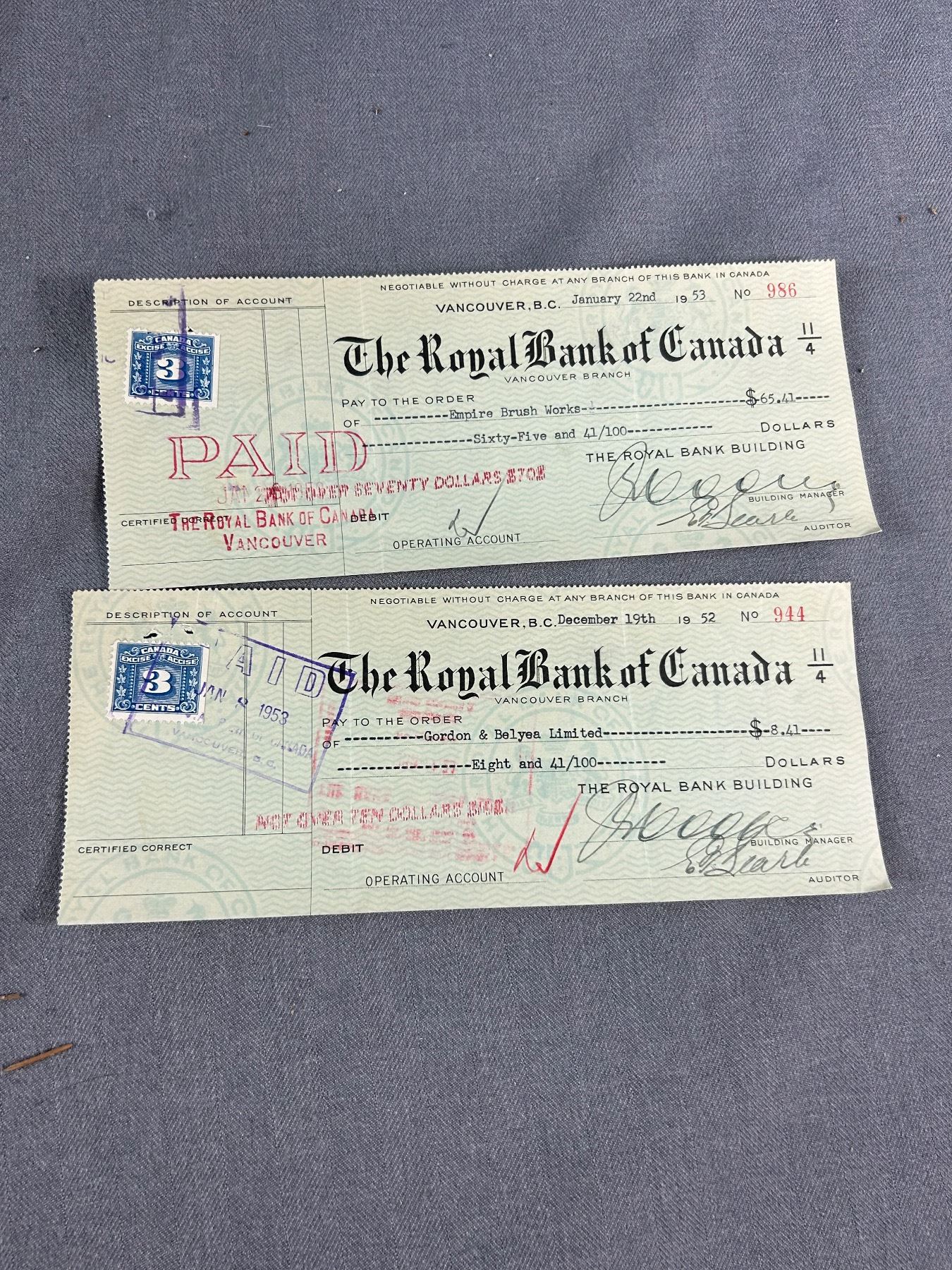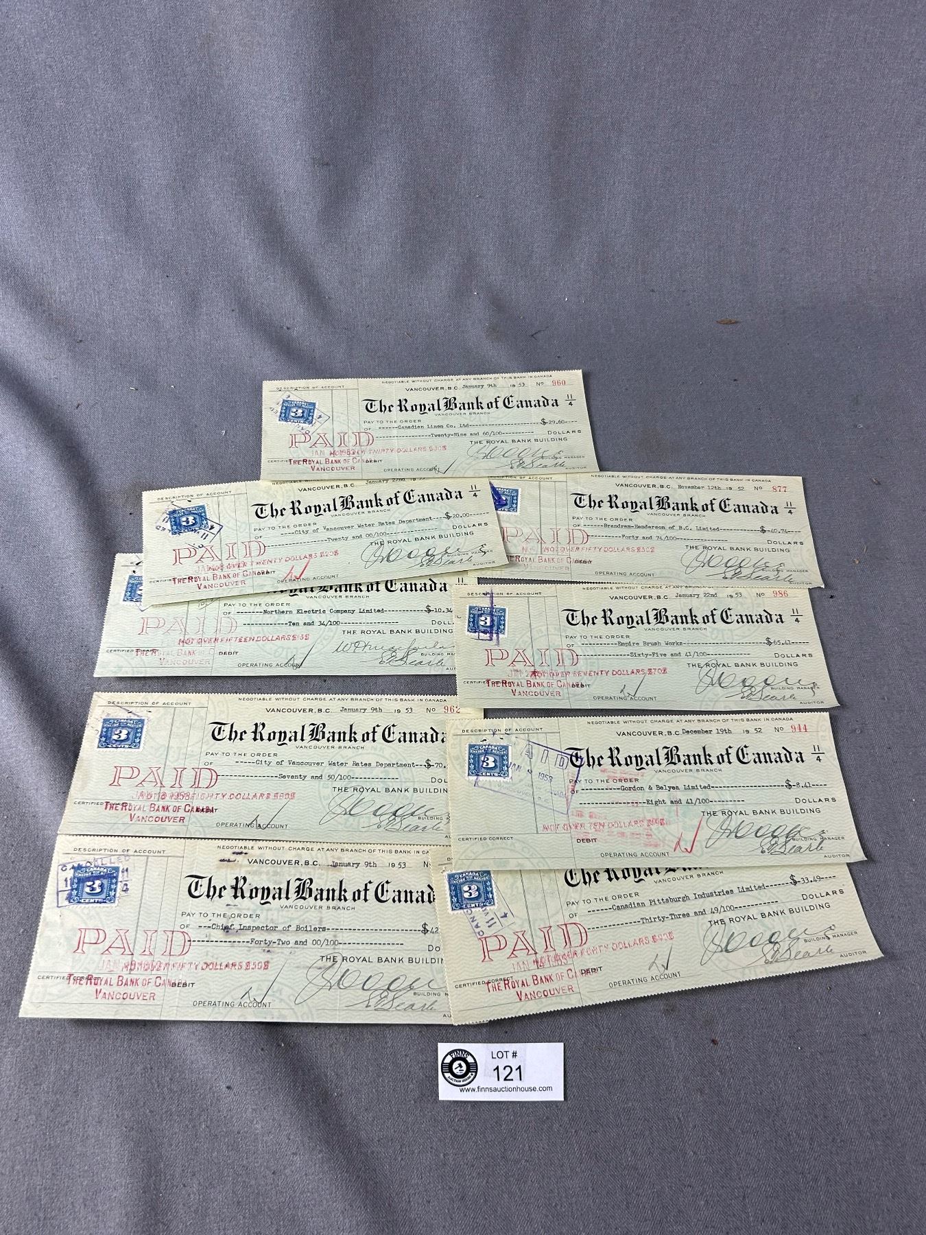 10 Vintage Royal Bank (Vancouver) Cancelled Cheoves