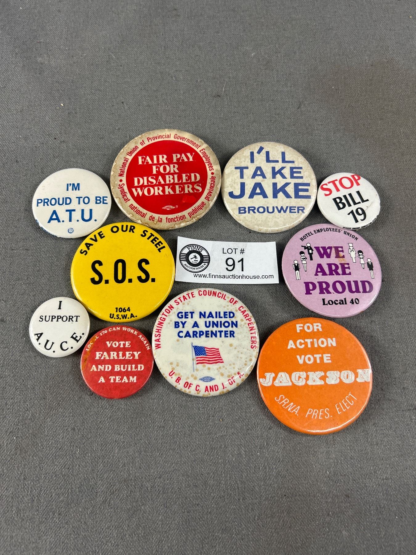 10 Vintage Union Pins/Badges