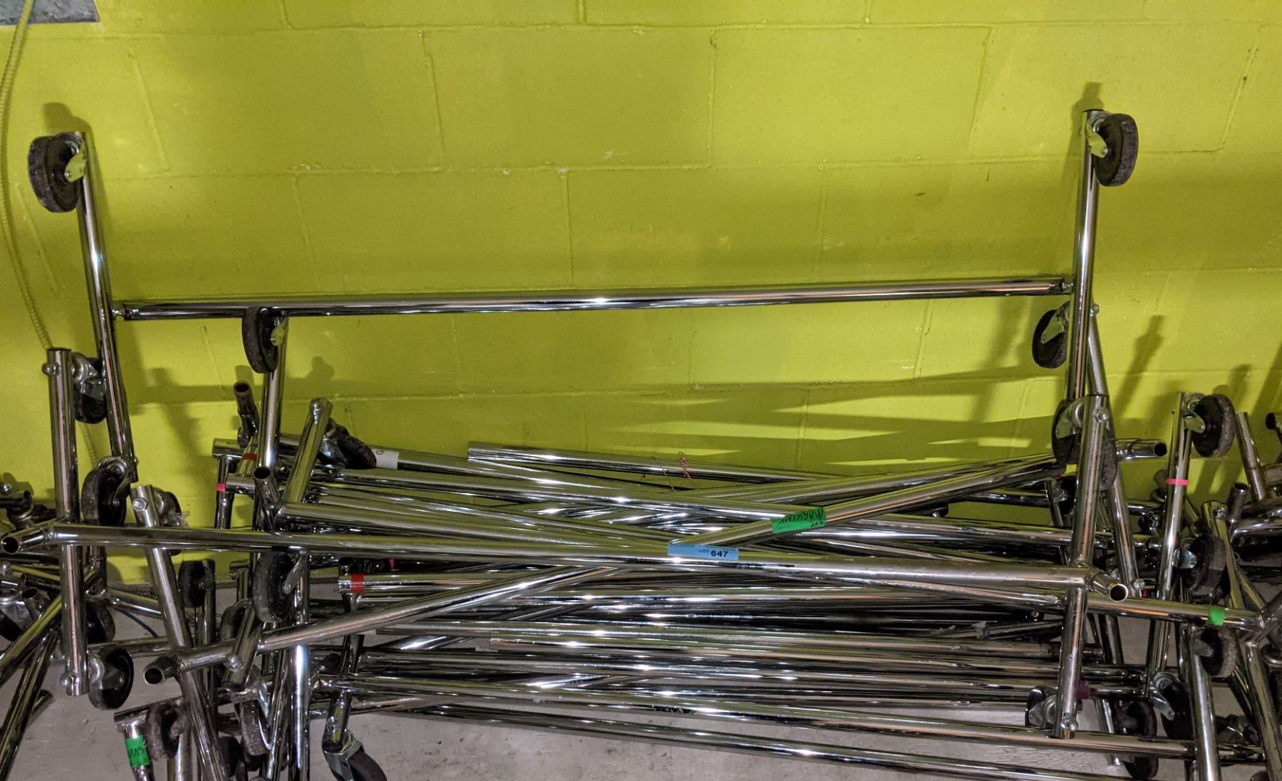 Each Rolling Rack collapses and are complete with base 2 sides, wheels and top..