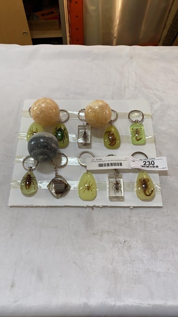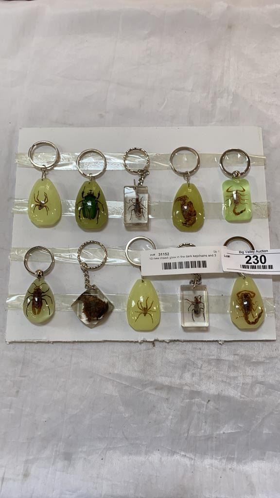 10 new insect glow in the dark keychains and 3 marble orbs