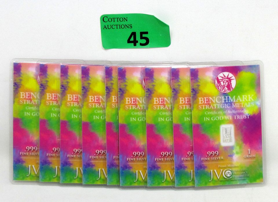 10 x 1 Grain .999 Silver Certified Bars in Assay Cards