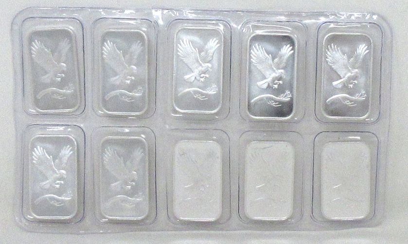 10 x 1 Oz .999 Silver Eagle SilverTowne Mint Bars in Uncut Sheet