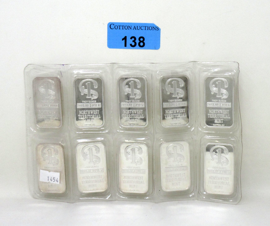 Northwest Territorial Mint. Uncut strip of 10 mint sealed bars. Tax exempt.