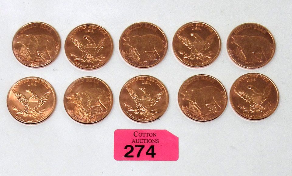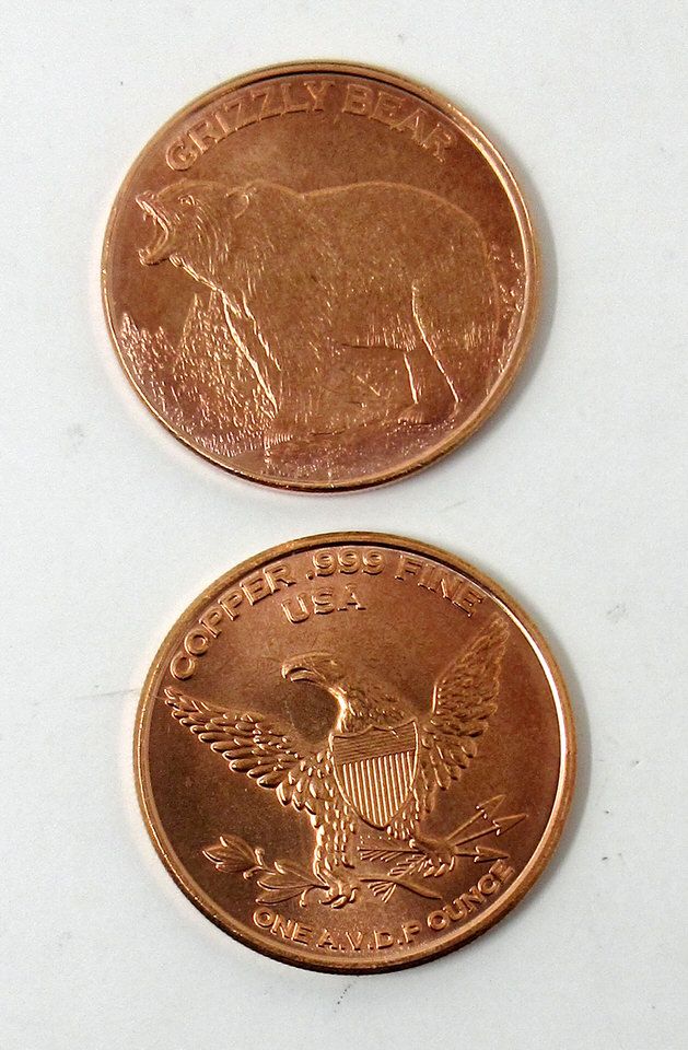 10 x .999 Fine Copper Grizzly Bear Rounds