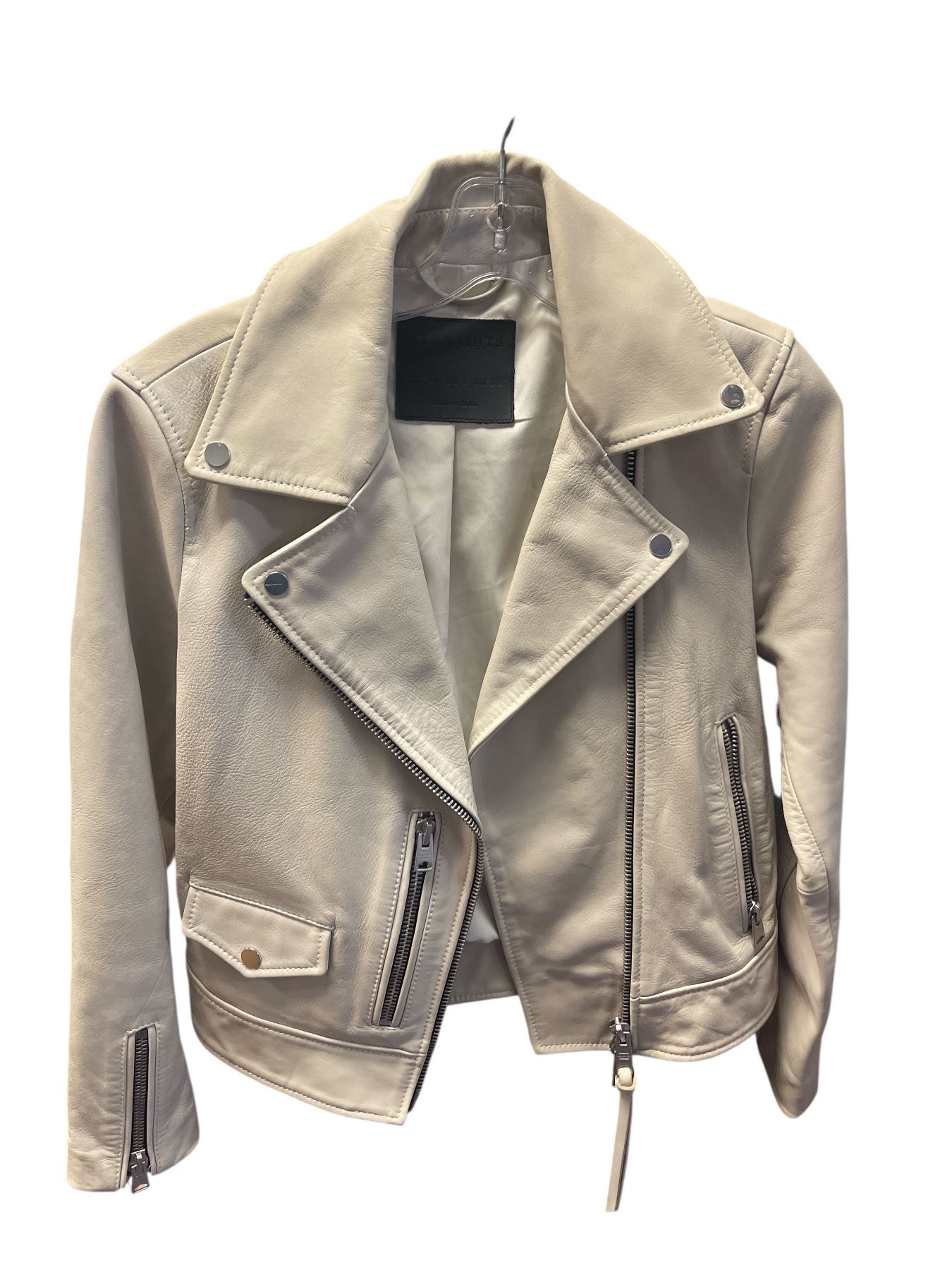 Genuine Beige Leather All Saints "Kara" Biker Jacket - Size 10