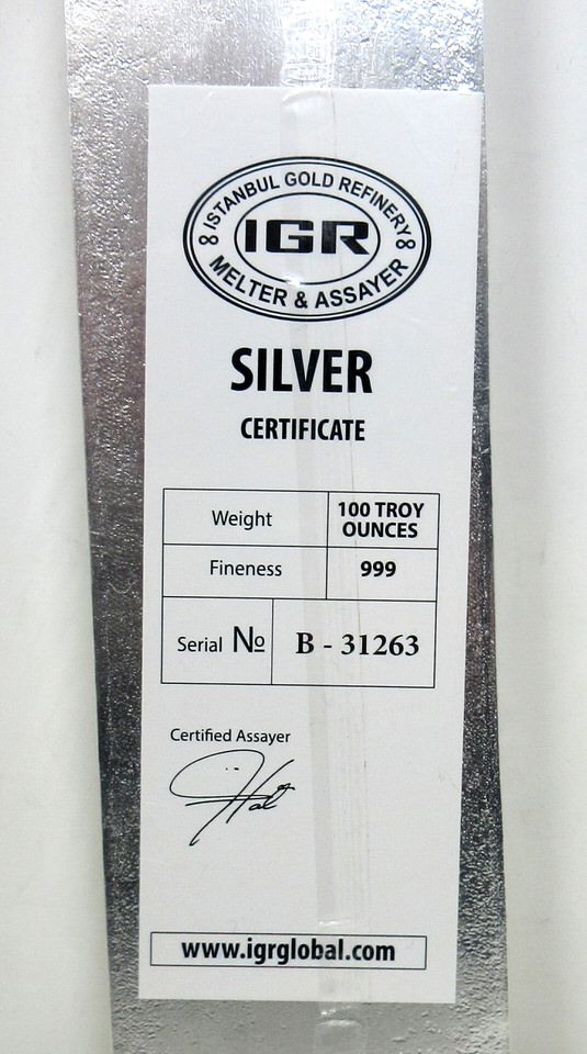 100 Oz .999 Silver IGR Serial Numbered Bar