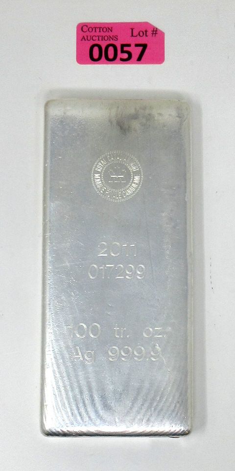 100 Oz .9999 Silver Royal Canadian Mint Bar