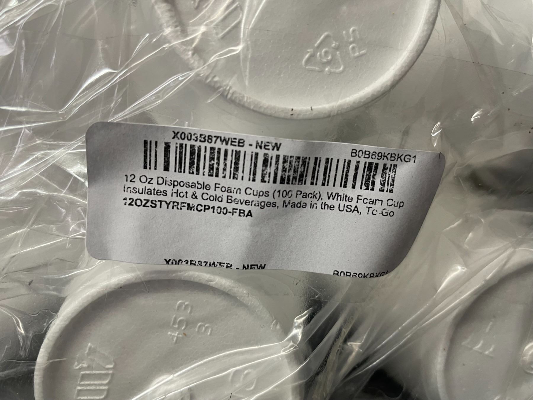 100-Pack of White Foam Disposable Cups (12oz) Insulates Hot & Cold Beverages - New