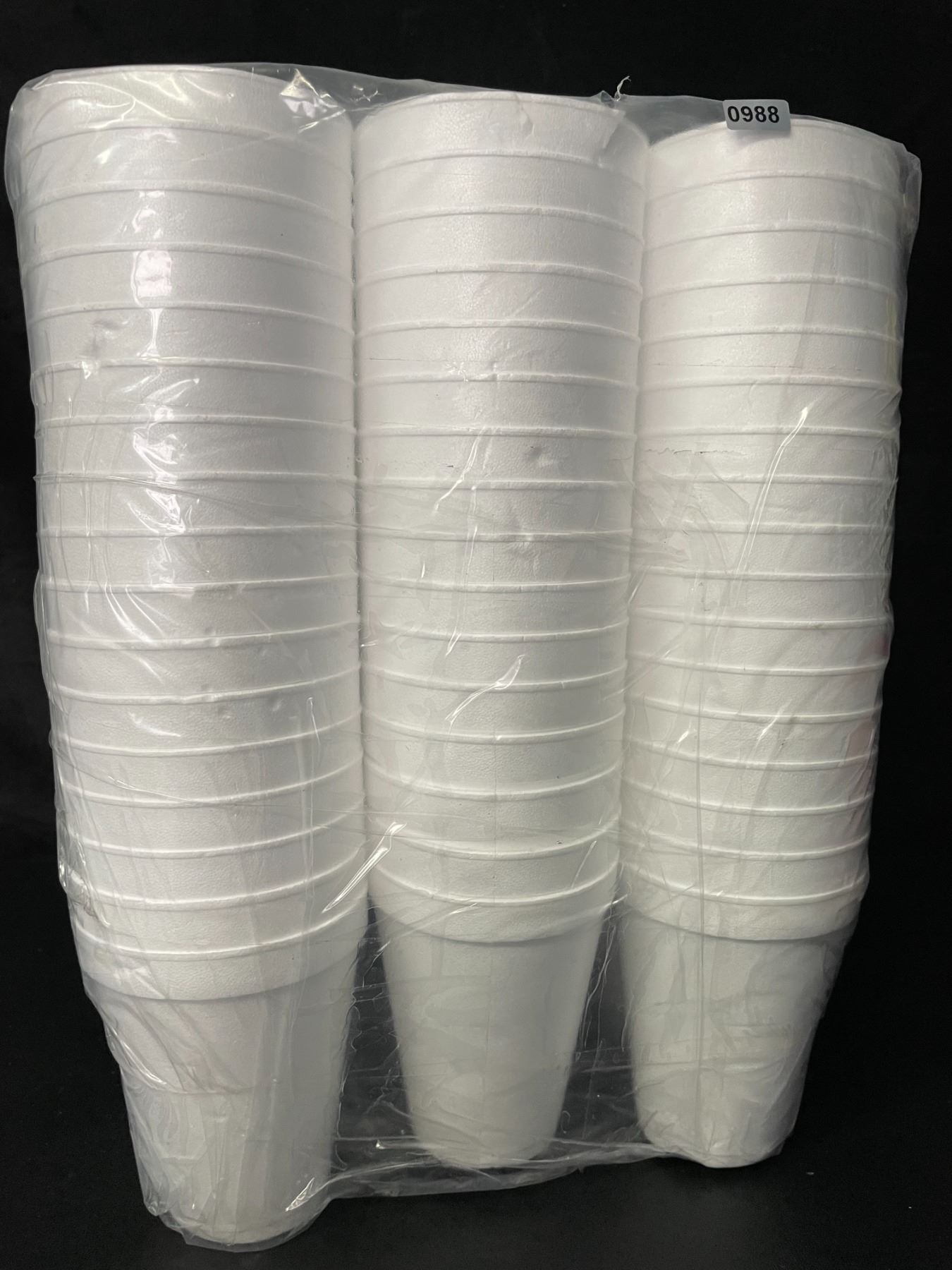 100-Pack of White Foam Disposable Cups (12oz) Insulates Hot & Cold Beverages - New