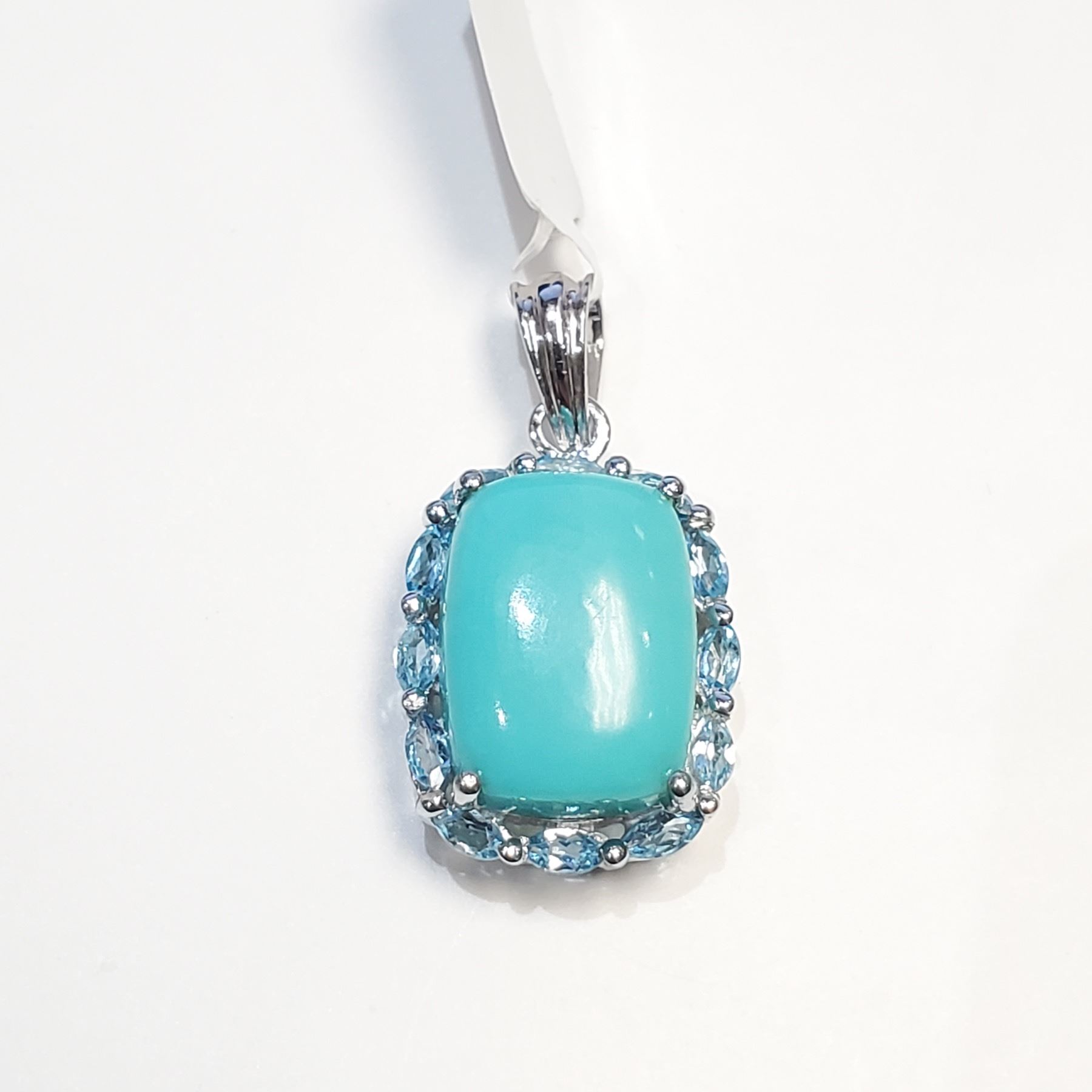 Silver Turquoise & Blue Topaz Pendant (~Size 0) (~length 0inches), Suggested Retail Value $100