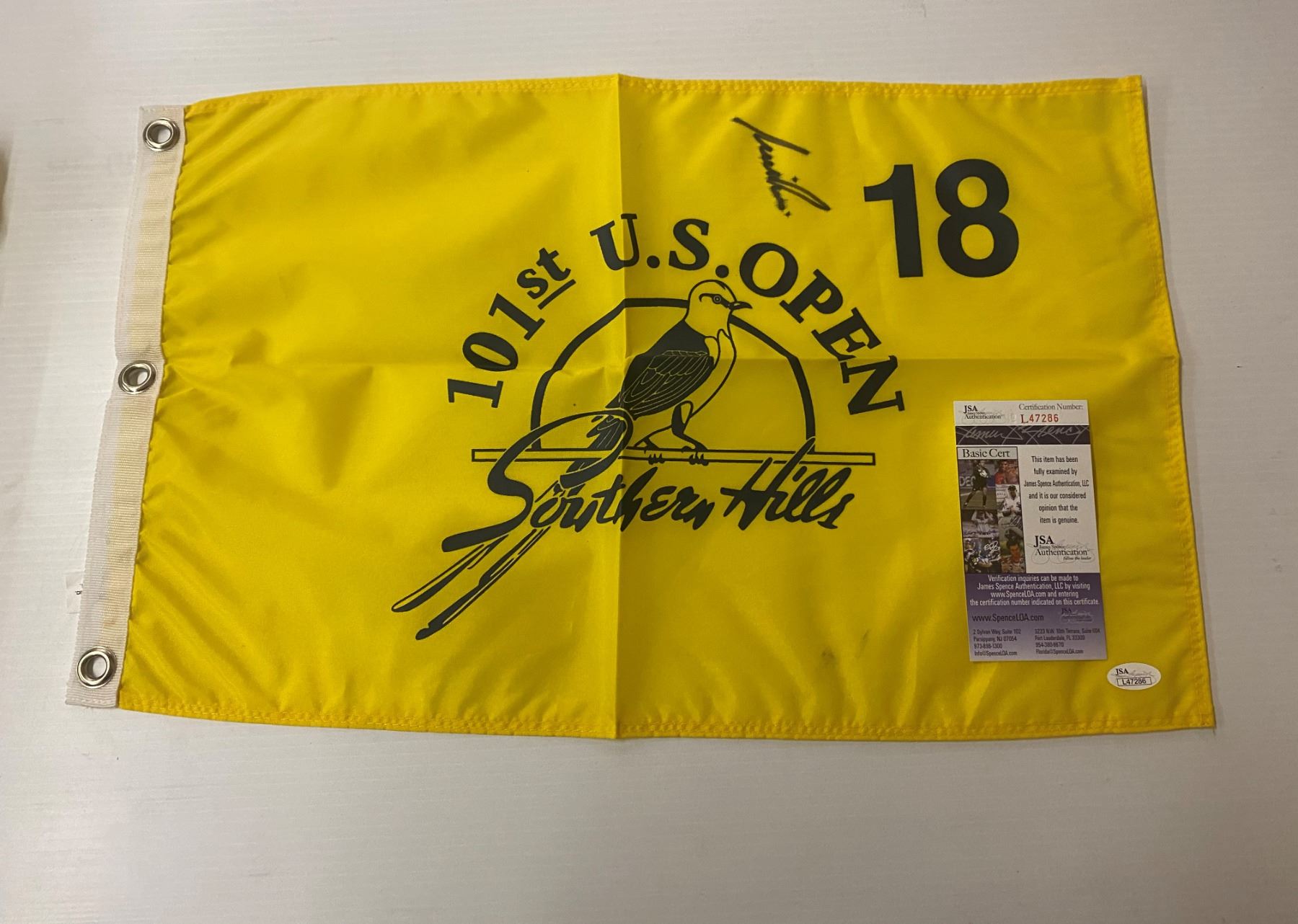 101st U.S. Open Southern Hills signed flag w/ COA