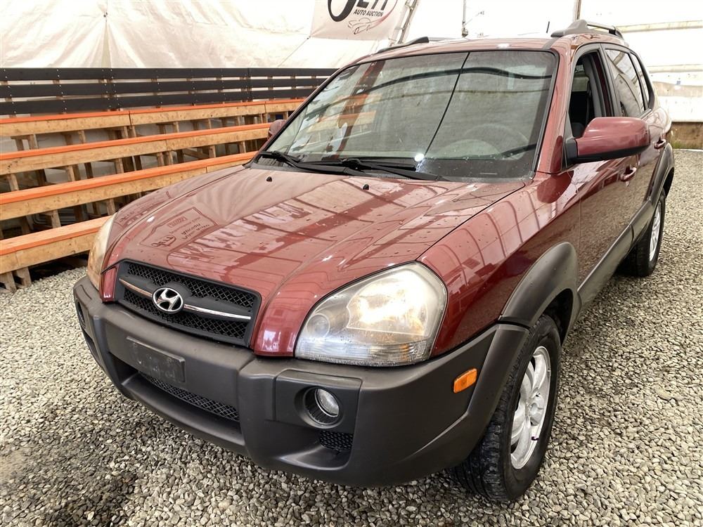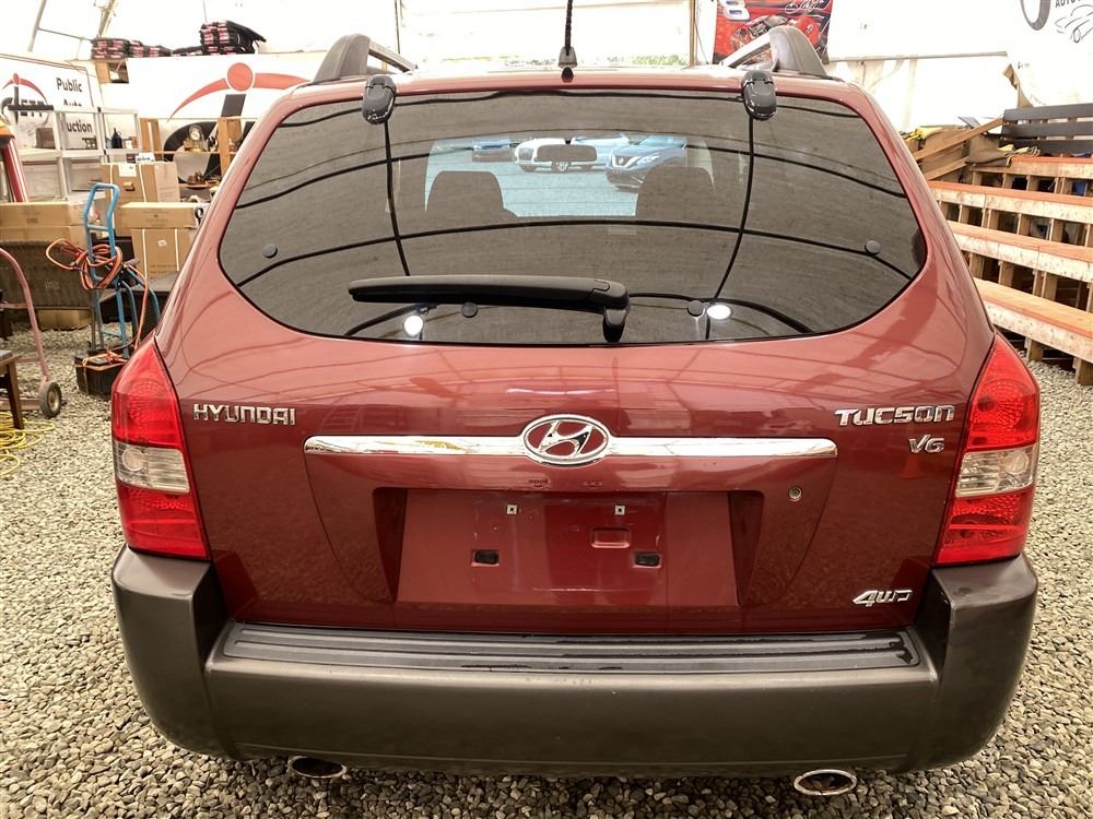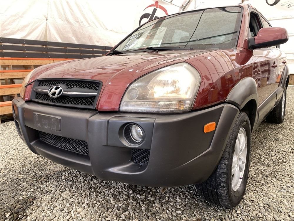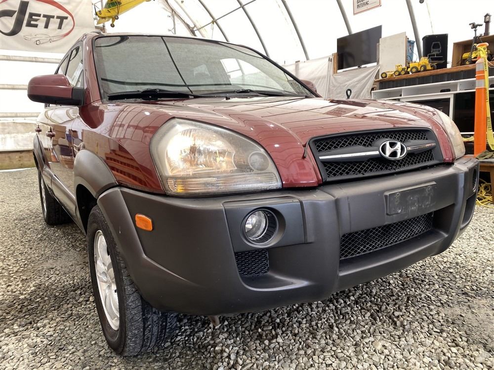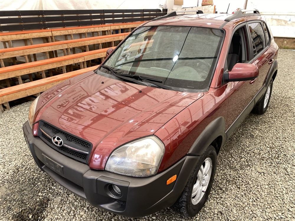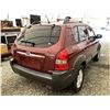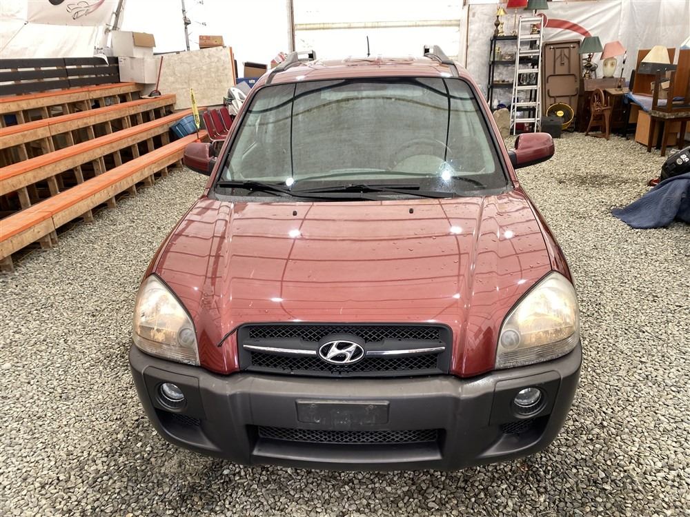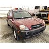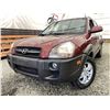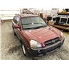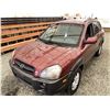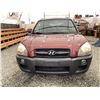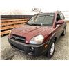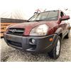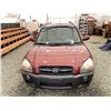 2006 HYUNDAI TUCSON GL, RED, 263470 KMS, 2.7L, 6 CYLINDER, GASOLINE, AUTOMATIC WITH TIPTRONIC, TRANSMISSION, ALL WHEEL DRIVE, 5 PASSENGER. AIR CONDITIONING, POWER WINDOWS, POWER LOCKS, KEY-LESS ENTRY, TILT STEERING, CRUISE CONTROL, ALLOY WHEELS, ANTI THEFT, DUAL AIR BAGS, CD PLAYER, TRACTION CONTROL, ROOF RACK, SPLIT-FOLDING REAR SEATS. DECLARATIONS: NO DESIGNATIONS 1 ACCIDENTS 1 GLASS CLAIM, TOTALING $1895. SERVICE HISTORY SHOWS14 RECORDS. AUCTION NOTES: STOCK #: J300131 KM8JM72D36U300131 NOT MECHANICALLY INSPECTED, NOT SUITABLE FOR TRANSPORTATION, MUST TOW.