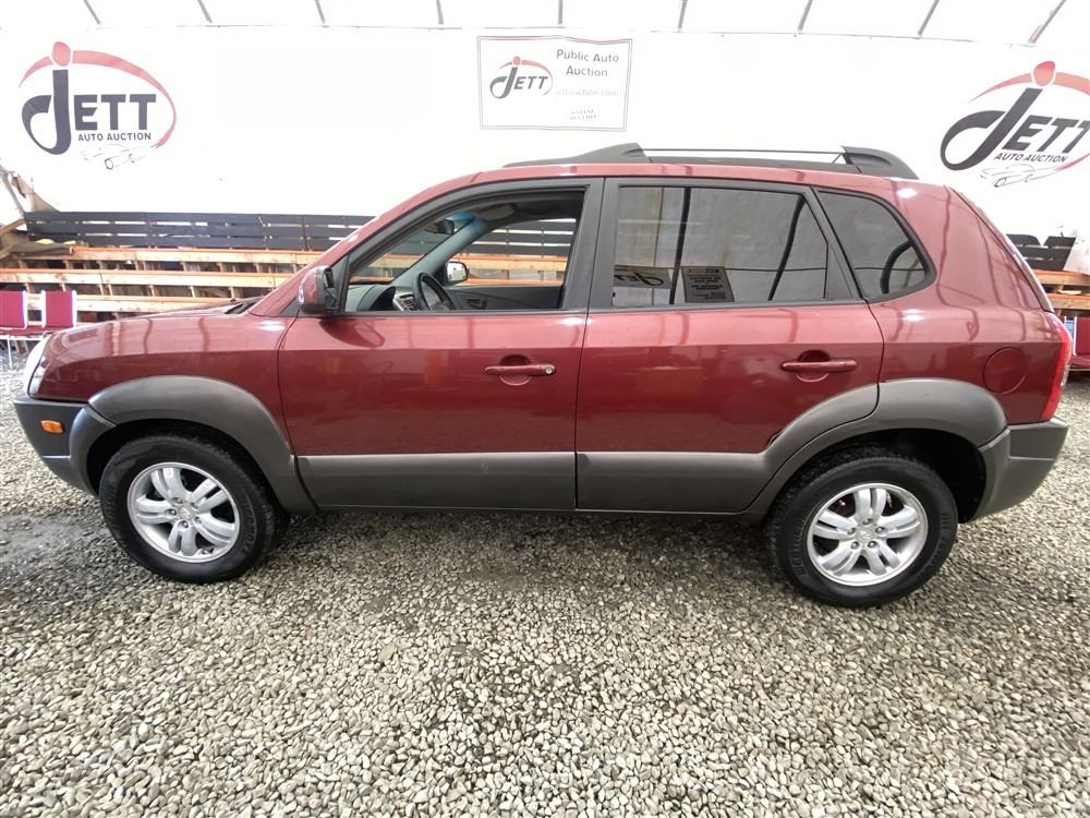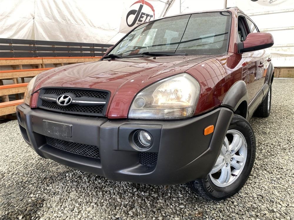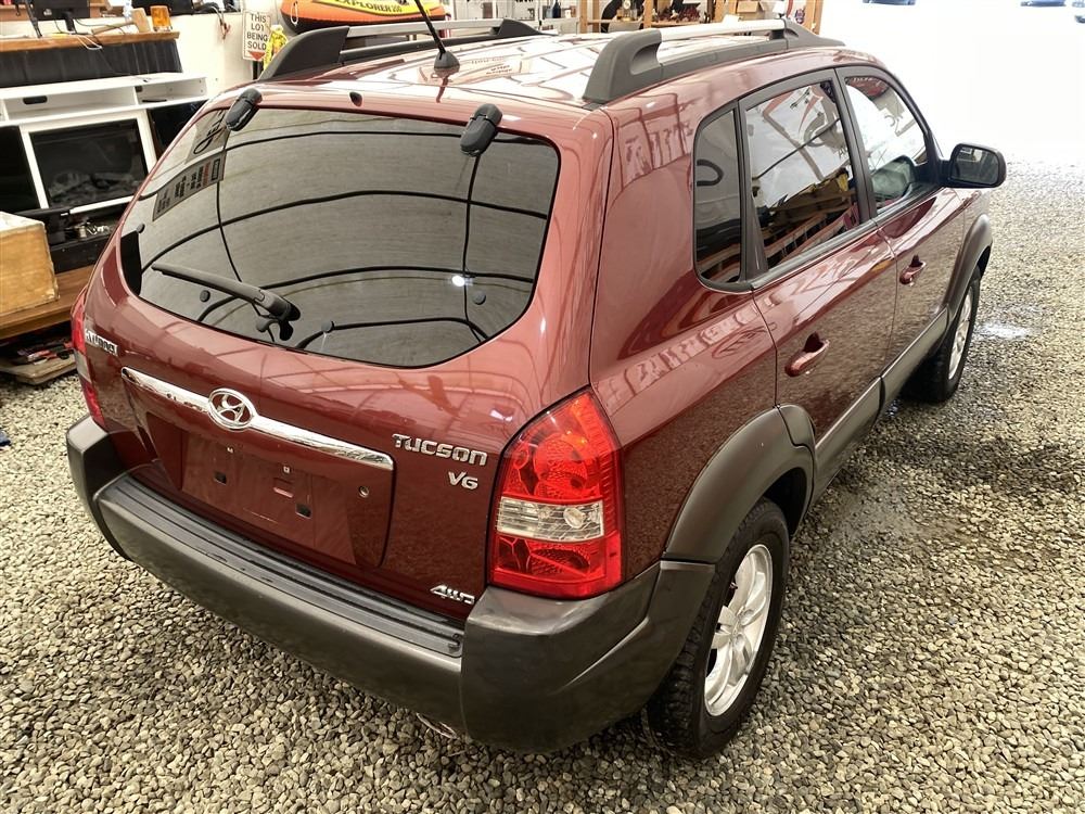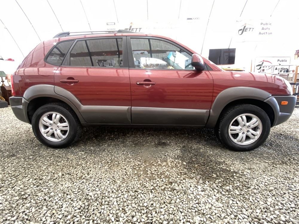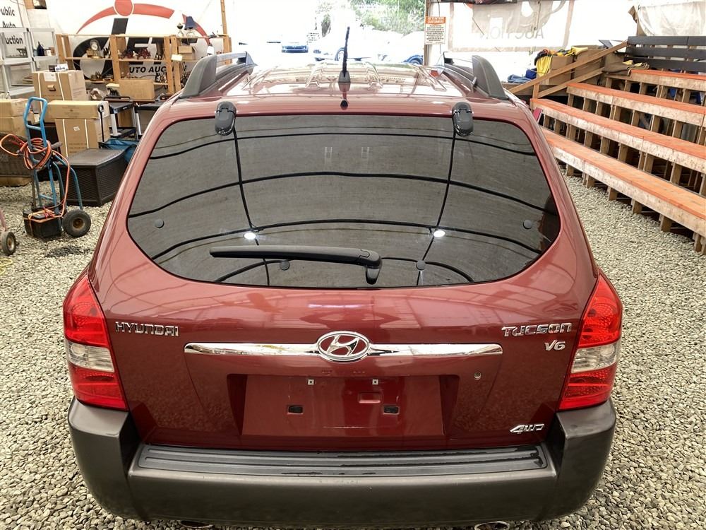 2006 HYUNDAI TUCSON GL, RED, 263470 KMS, 2.7L, 6 CYLINDER, GASOLINE, AUTOMATIC WITH TIPTRONIC, TRANSMISSION, ALL WHEEL DRIVE, 5 PASSENGER. AIR CONDITIONING, POWER WINDOWS, POWER LOCKS, KEY-LESS ENTRY, TILT STEERING, CRUISE CONTROL, ALLOY WHEELS, ANTI THEFT, DUAL AIR BAGS, CD PLAYER, TRACTION CONTROL, ROOF RACK, SPLIT-FOLDING REAR SEATS. DECLARATIONS: NO DESIGNATIONS 1 ACCIDENTS 1 GLASS CLAIM, TOTALING $1895. SERVICE HISTORY SHOWS14 RECORDS. AUCTION NOTES: STOCK #: J300131 KM8JM72D36U300131 NOT MECHANICALLY INSPECTED, NOT SUITABLE FOR TRANSPORTATION, MUST TOW.