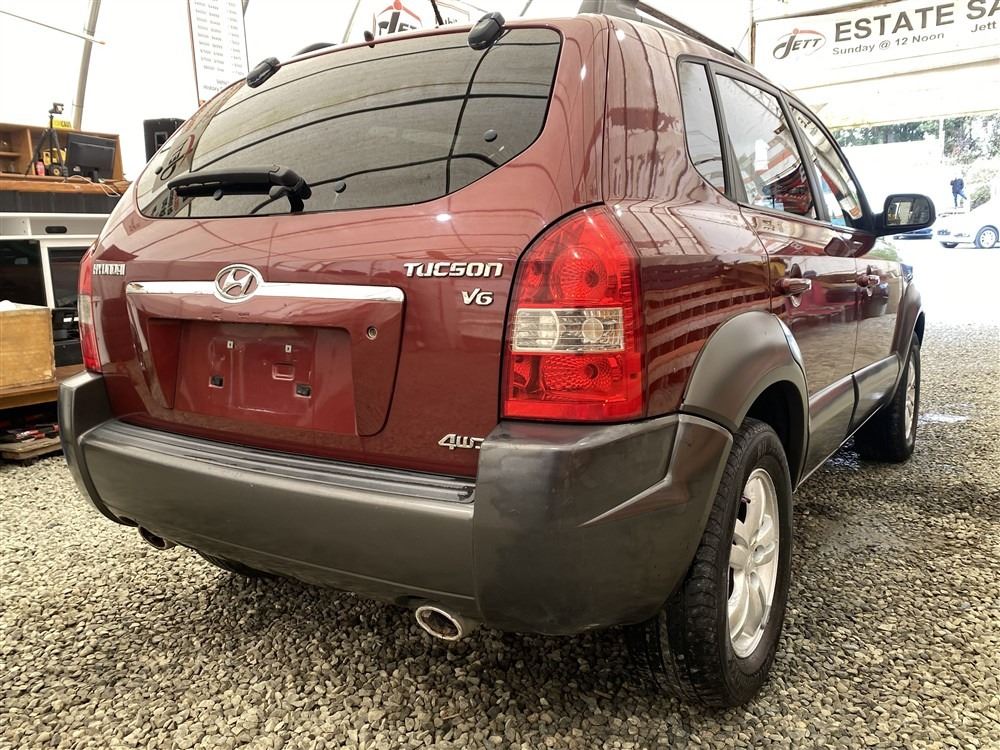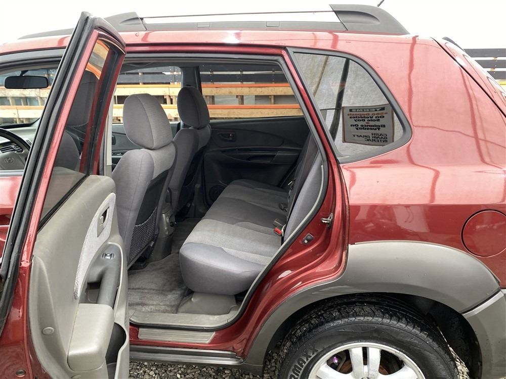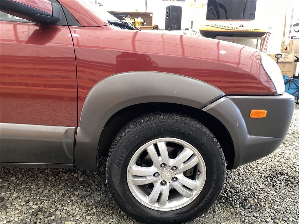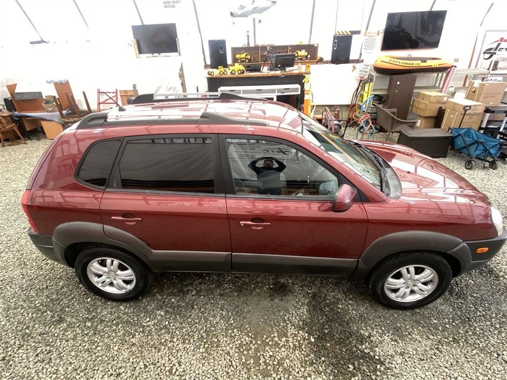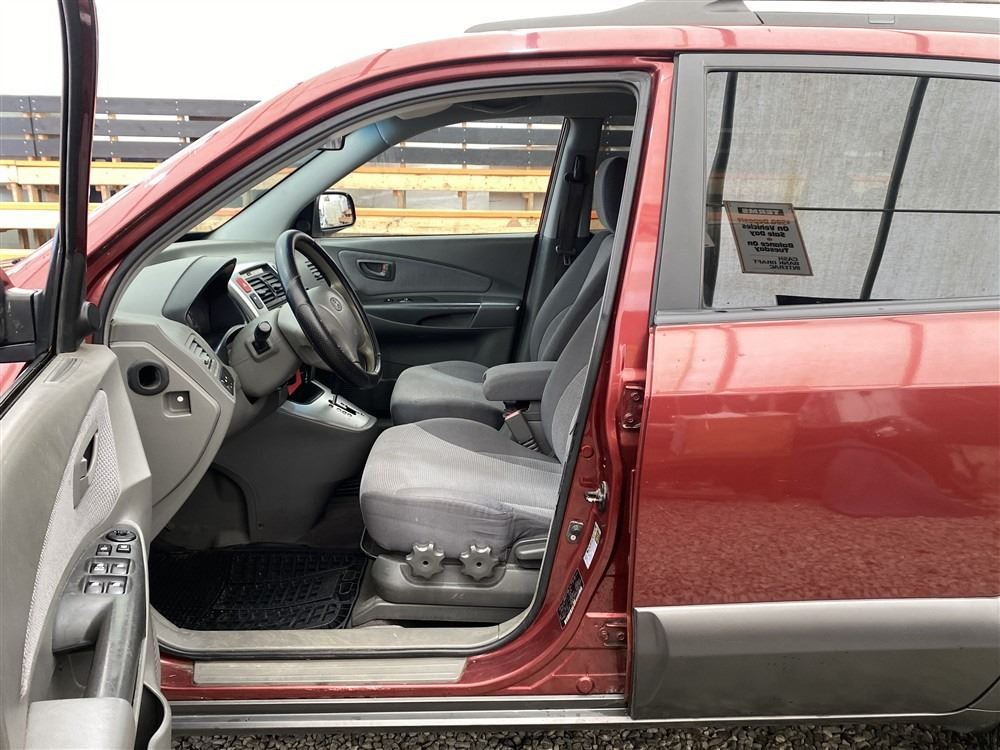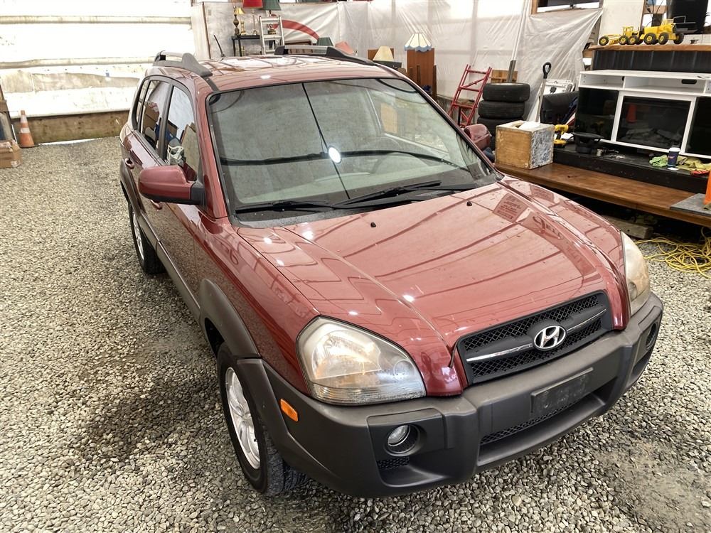 2006 HYUNDAI TUCSON GL, RED, 263470 KMS, 2.7L, 6 CYLINDER, GASOLINE, AUTOMATIC WITH TIPTRONIC, TRANSMISSION, ALL WHEEL DRIVE, 5 PASSENGER. AIR CONDITIONING, POWER WINDOWS, POWER LOCKS, KEY-LESS ENTRY, TILT STEERING, CRUISE CONTROL, ALLOY WHEELS, ANTI THEFT, DUAL AIR BAGS, CD PLAYER, TRACTION CONTROL, ROOF RACK, SPLIT-FOLDING REAR SEATS. DECLARATIONS: NO DESIGNATIONS 1 ACCIDENTS 1 GLASS CLAIM, TOTALING $1895. SERVICE HISTORY SHOWS14 RECORDS. AUCTION NOTES: STOCK #: J300131 KM8JM72D36U300131 NOT MECHANICALLY INSPECTED, NOT SUITABLE FOR TRANSPORTATION, MUST TOW.