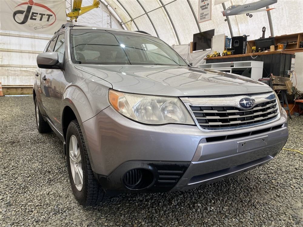 2010 SUBARU FORESTER, GREY, 269820 KMS, 2.5L, 4 CYLINDER, GASOLINE, AUTOMATIC WITH TIPTRONIC, TRANSMISSION, ALL WHEEL DRIVE, 5 PASSENGER. AIR CONDITIONING, POWER WINDOWS, POWER LOCKS, KEY-LESS ENTRY, TILT STEERING, CRUISE CONTROL, ALLOY WHEELS, ANTI THEFT, DUAL AIR BAGS, BLUETOOTH, AFTERMARKET STEREO, TRACTION CONTROL, STEERING WHEEL CONTROLS, ROOF RACK, TOW PACKAGE, POWER MIRRORS, CHIP OR CRACK IN WINDSHIELD, SPLIT-FOLDING REAR SEATS. DECLARATIONS: NO DESIGNATIONS 4 ACCIDENTS 1 GLASS CLAIM, TOTALING $12355. SERVICE HISTORY SHOWS 39 RECORDS.
