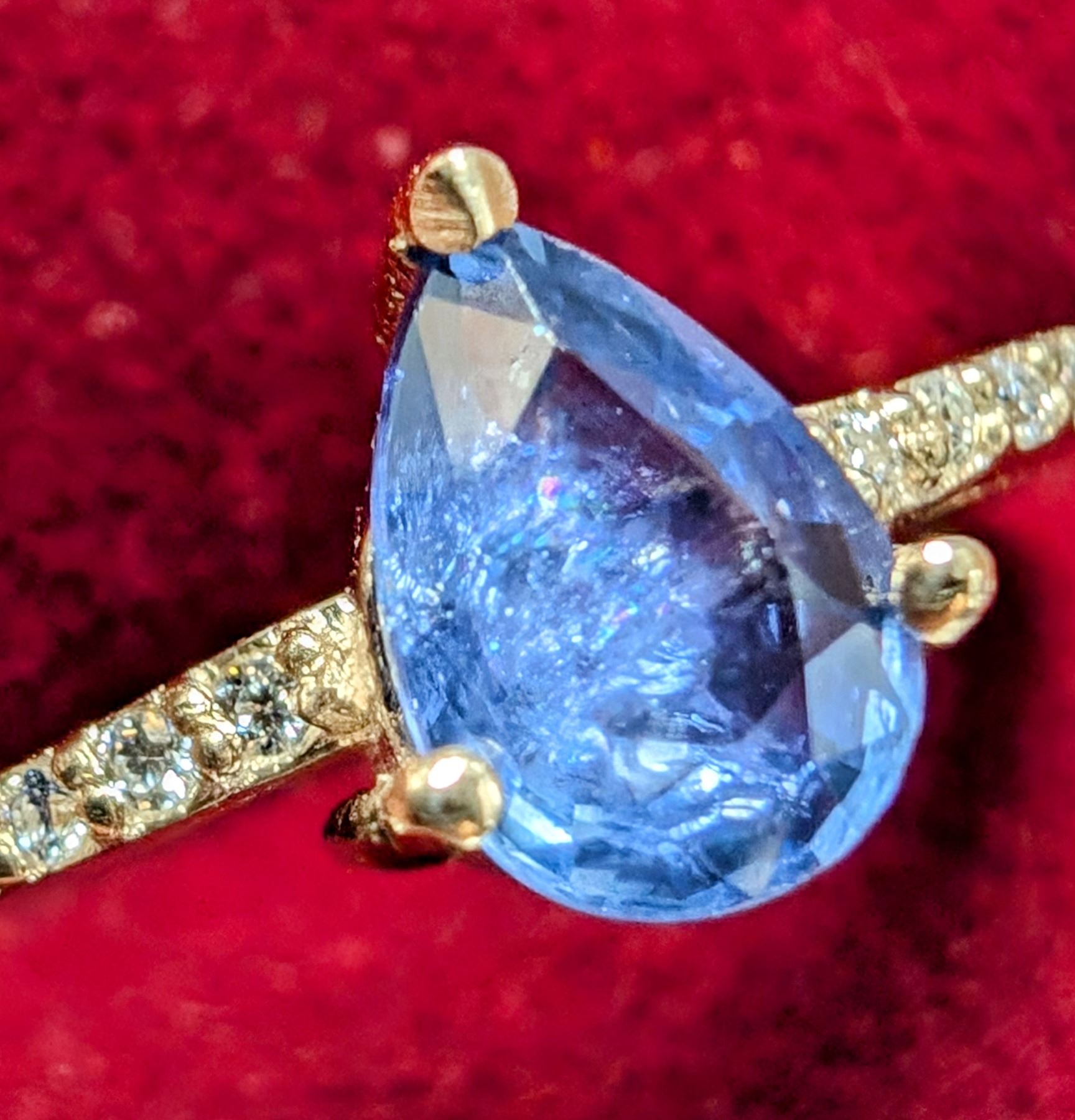 10K(1.97G), SAPPHIRE (0.9CT), MOISSANITE (0.08CT)RING, SIZE 6.5, APPRAISED INSURANCE VALUE $1375