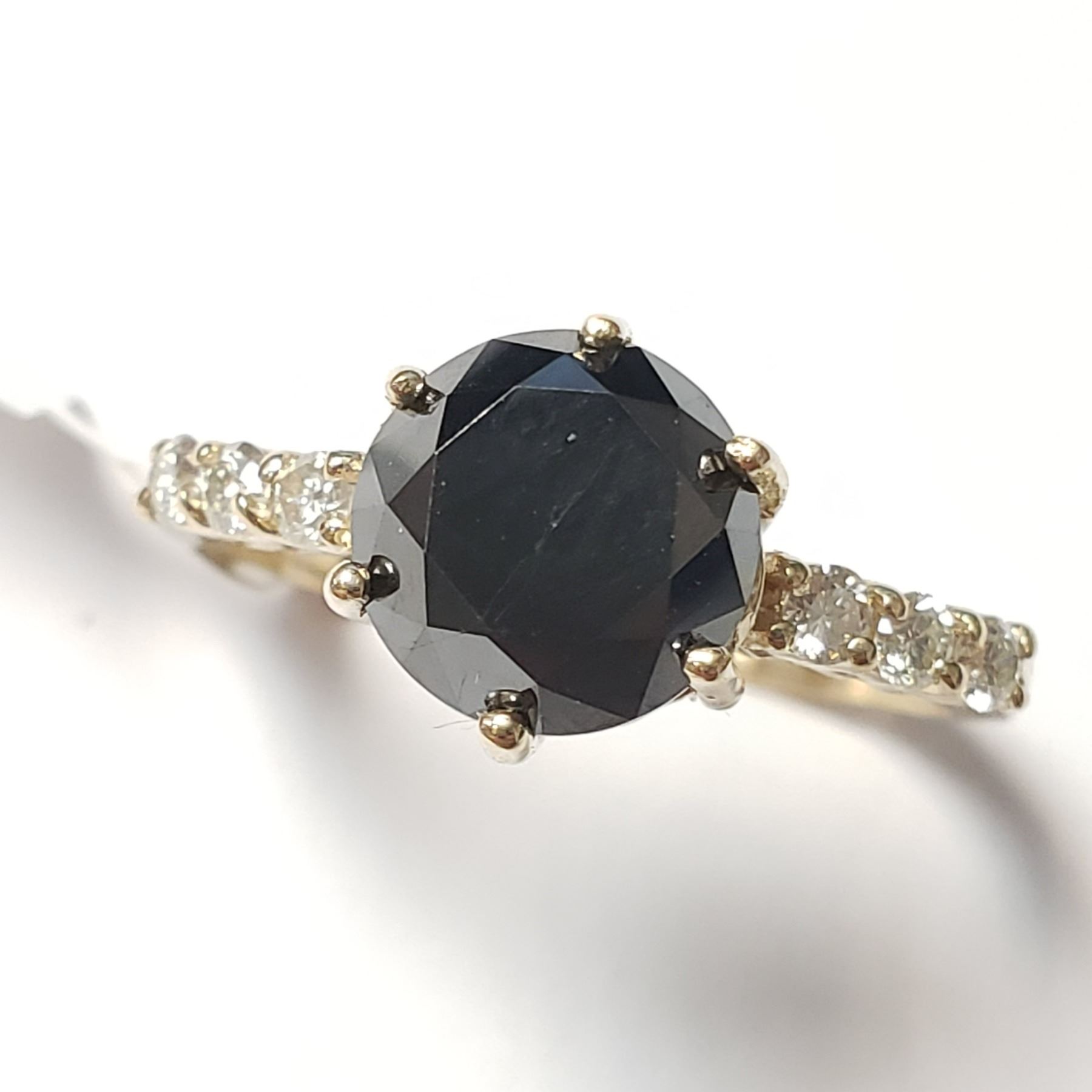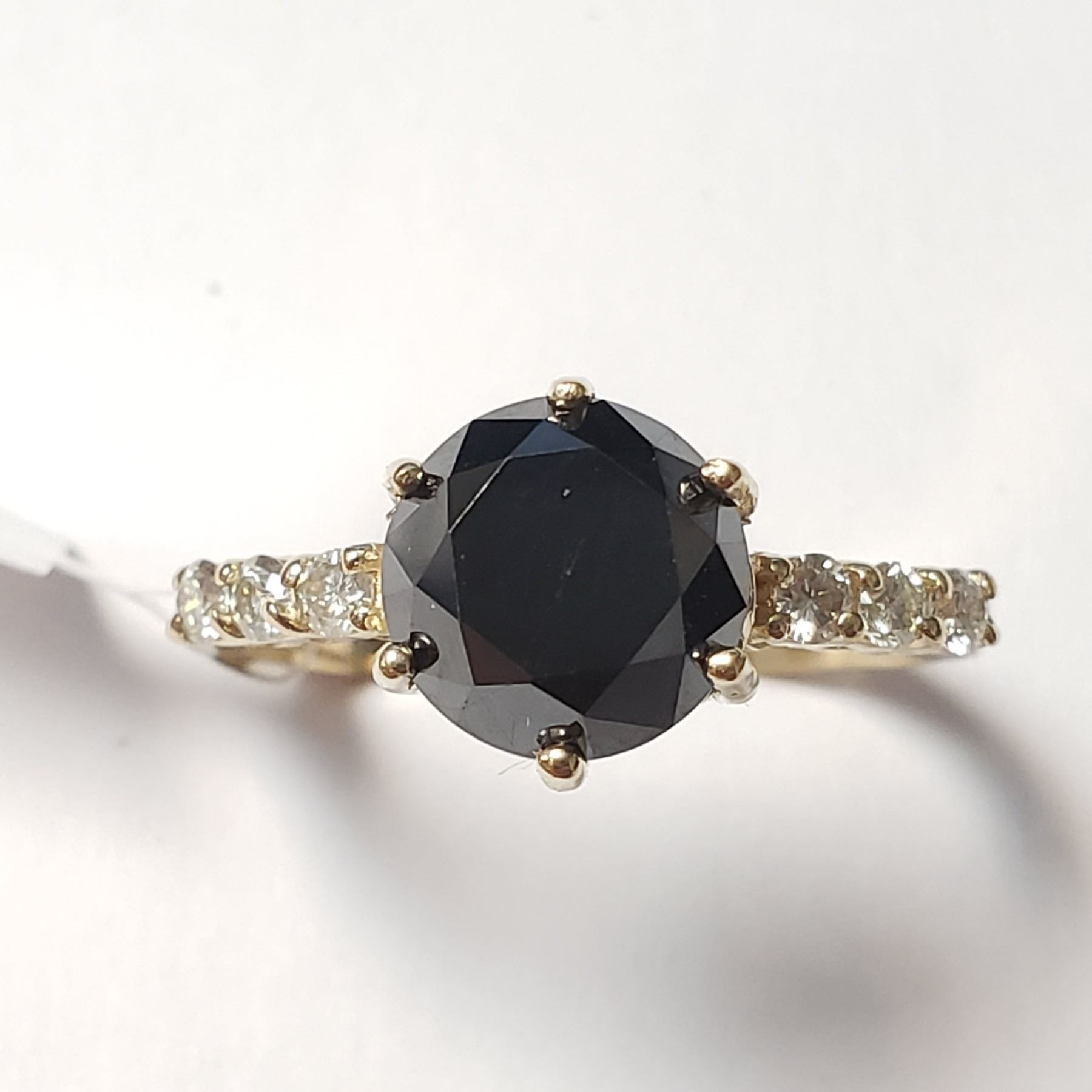 10K BLACK DIAMOND(2.4CT) DIAMOND(0.2CT) RING SIZE 6.5