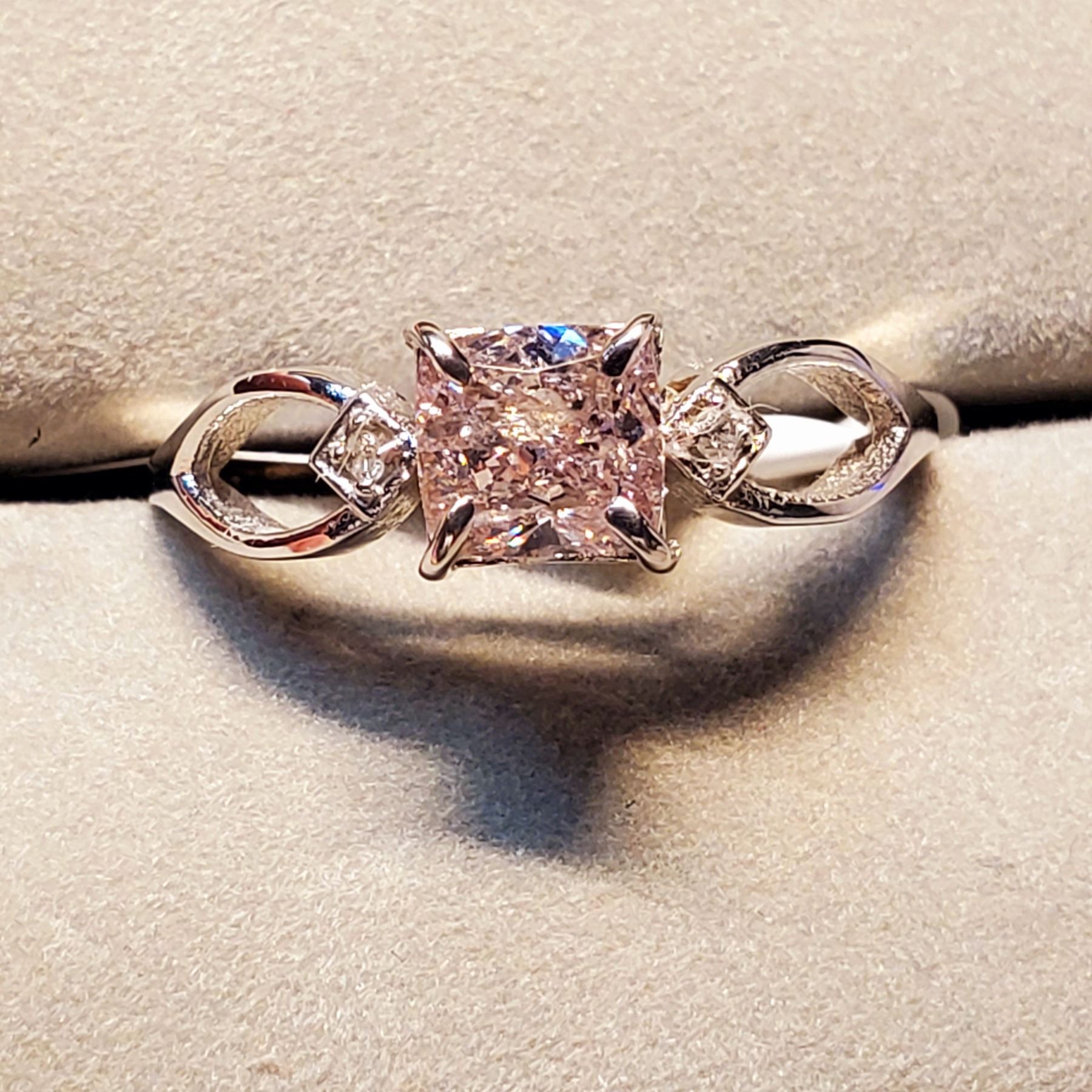 10K FANCY RARE PINK DIAMOND (1.08CT) TWO DIAMOND (0.02CT) RING SIZE 7