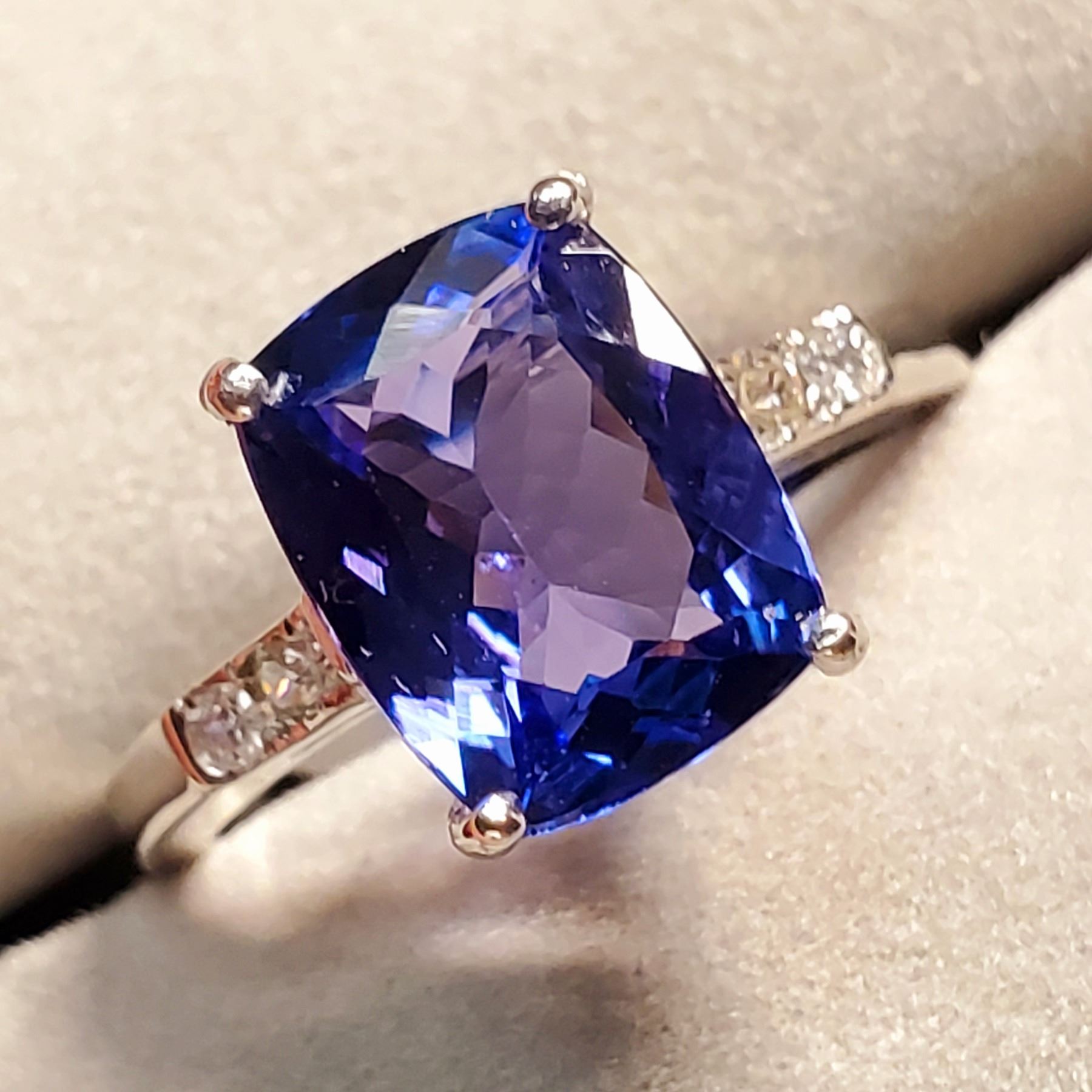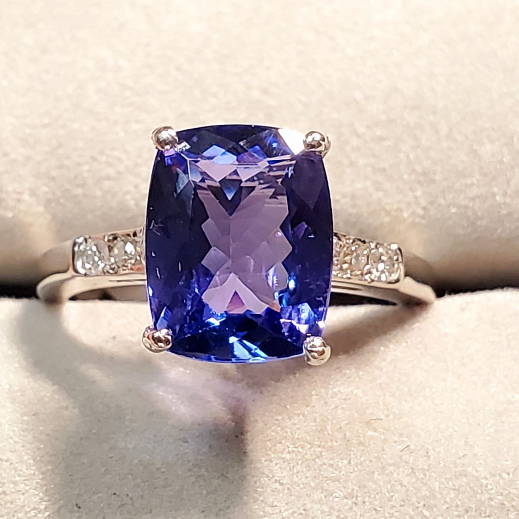 10K NATURAL TANZANITE (3CT) SIX ROUND DIAMOND (0.12CT) RING SIZE 6