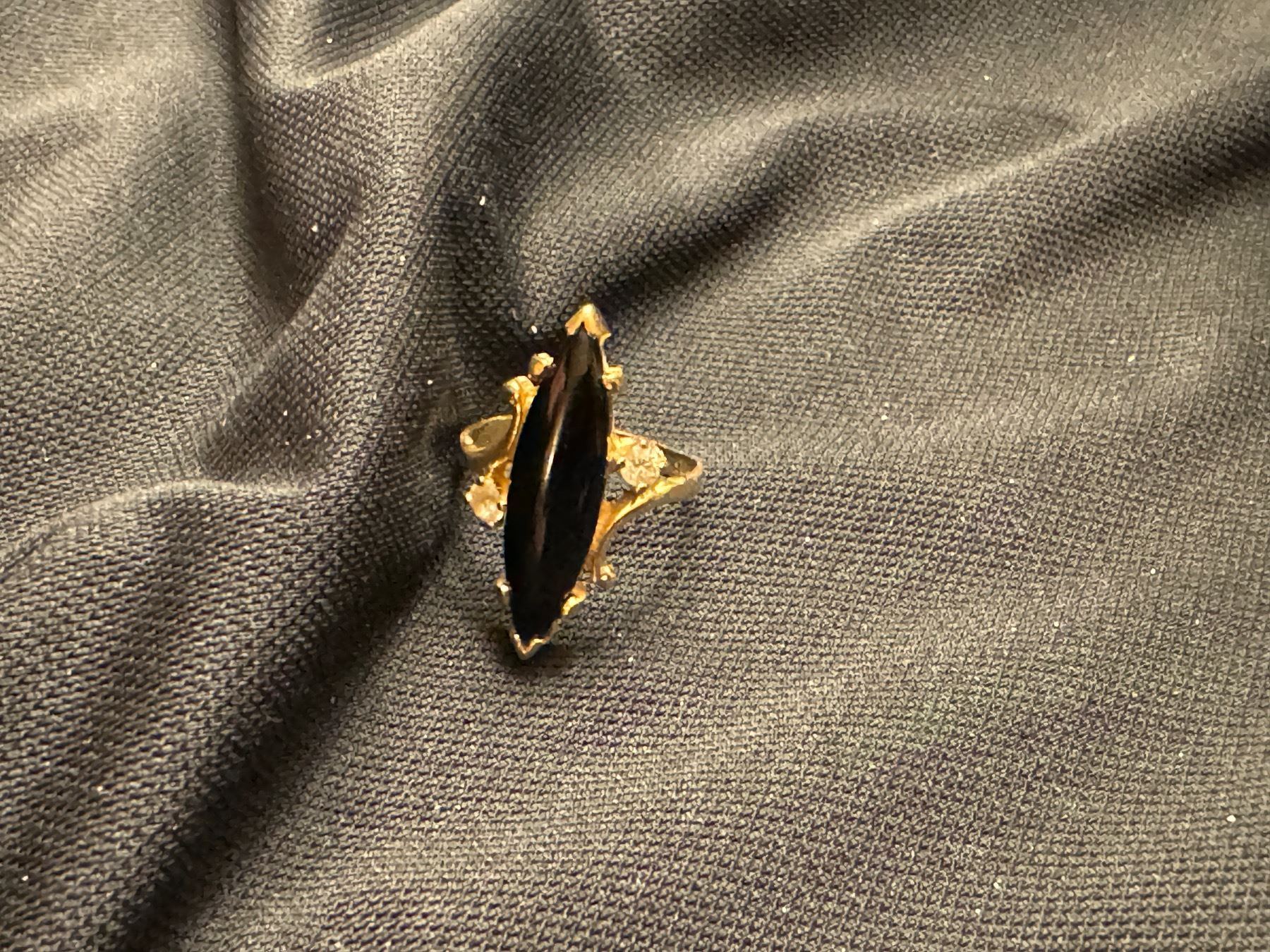 10K RING WITH ONYX AND WHITE STONES 3.9G