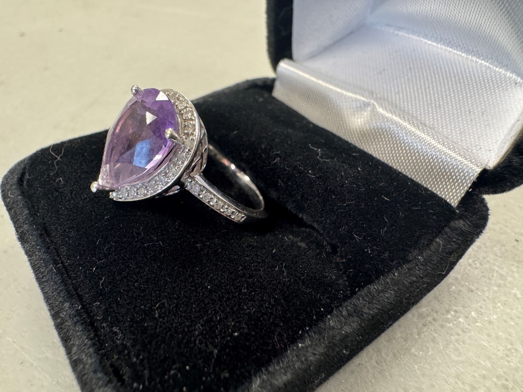 10K WHITE GOLD AMETHYST RING SIZE 13.5