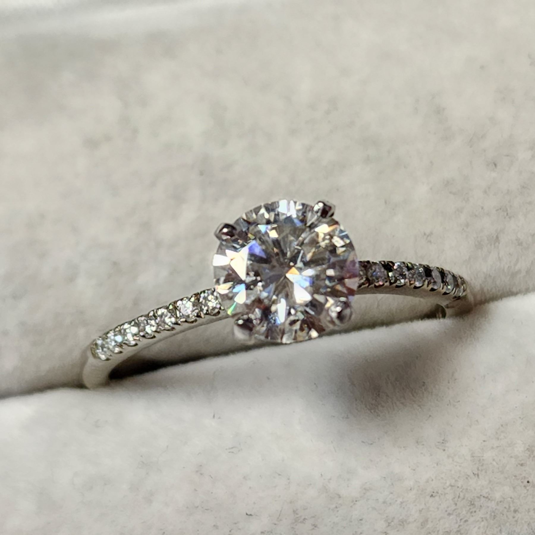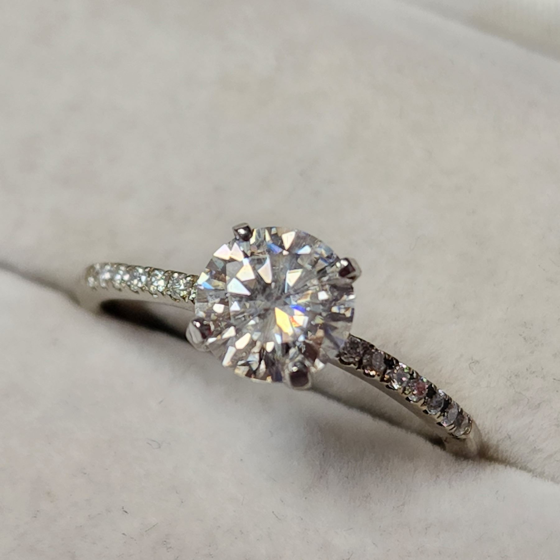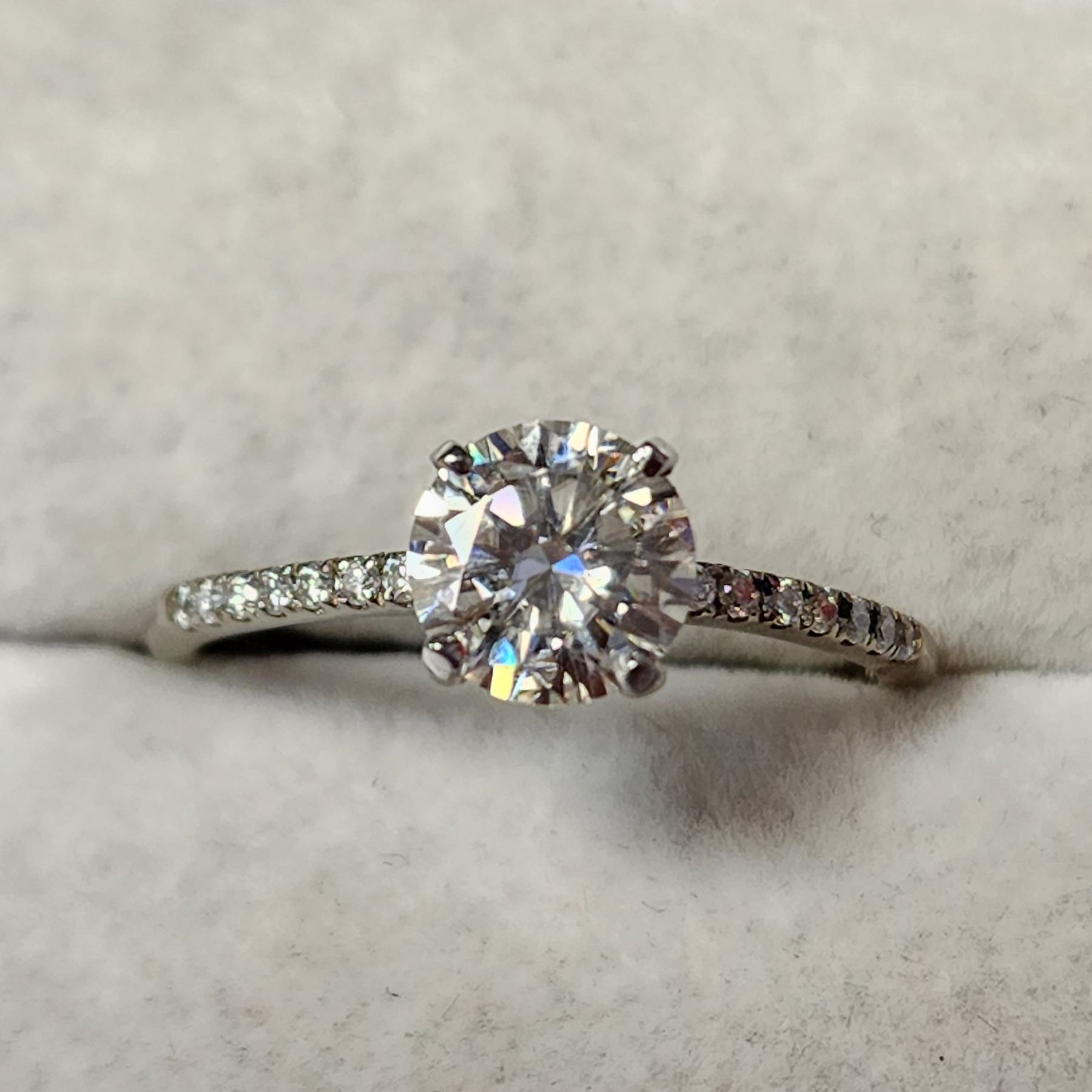 10K WHITE GOLD MOISSANITE(1CT) MOISSANITE(0.16CT) RING (SIZE 6.5) (WEIGHT 1.37G)