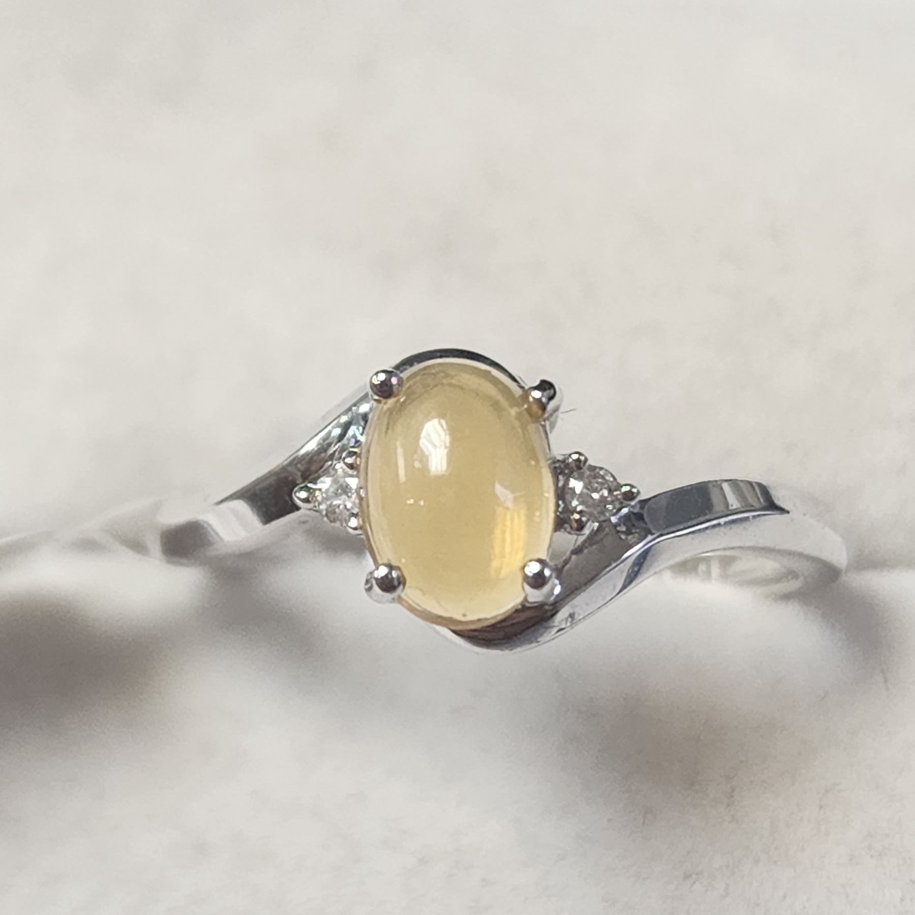10K WHITE GOLD OPAL(1CT) DIAMOND(0.02CT) RING (SIZE 7) (WEIGHT 1.76G)