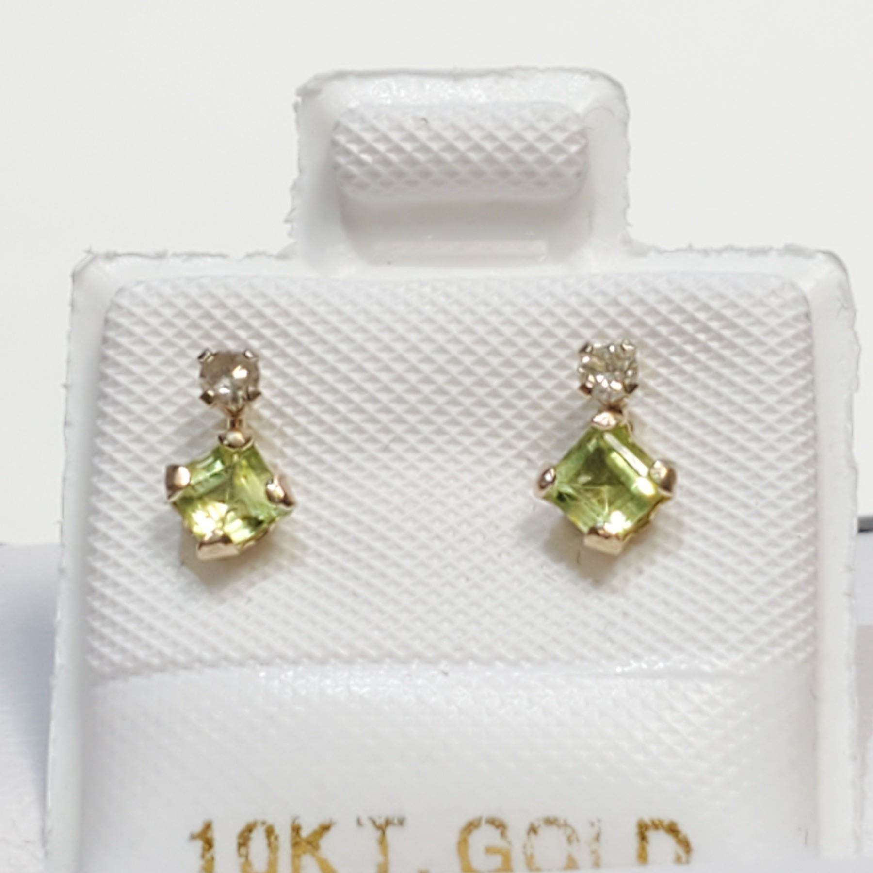 10K YELLOW GOLD PERIDOT(0.4CT) DIAMOND(0.06CT) EARRINGS