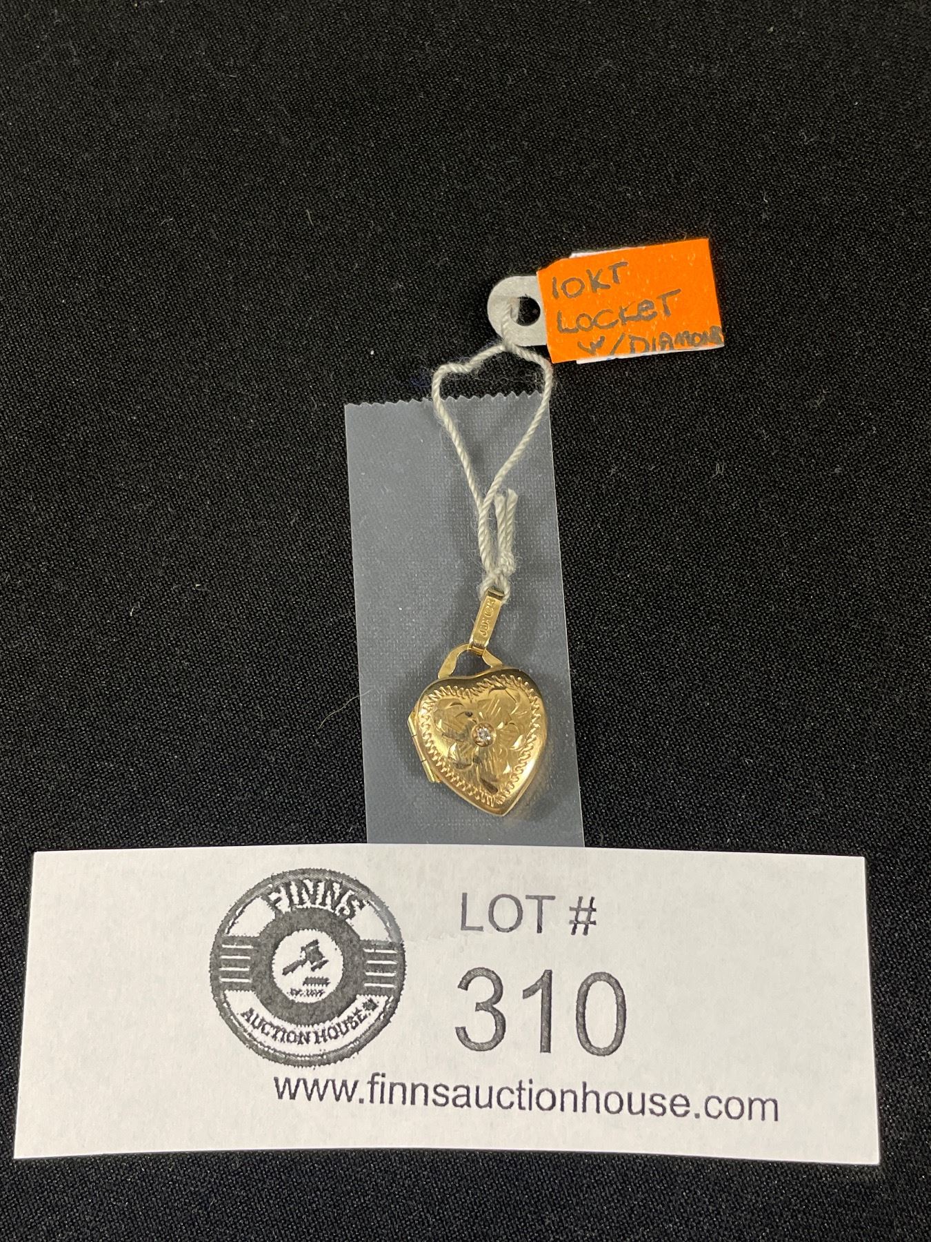 10K Yellow Gold Heart Locket Etched Flower With Diamond Pendant 1.3 GR