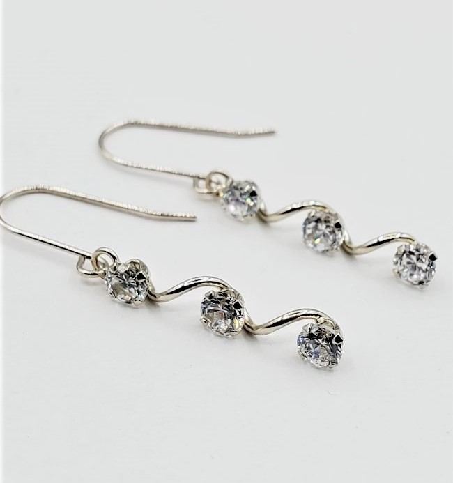 10KT. WHITE GOLD CZ DANGLE EARRINGS, RETAIL $200.00