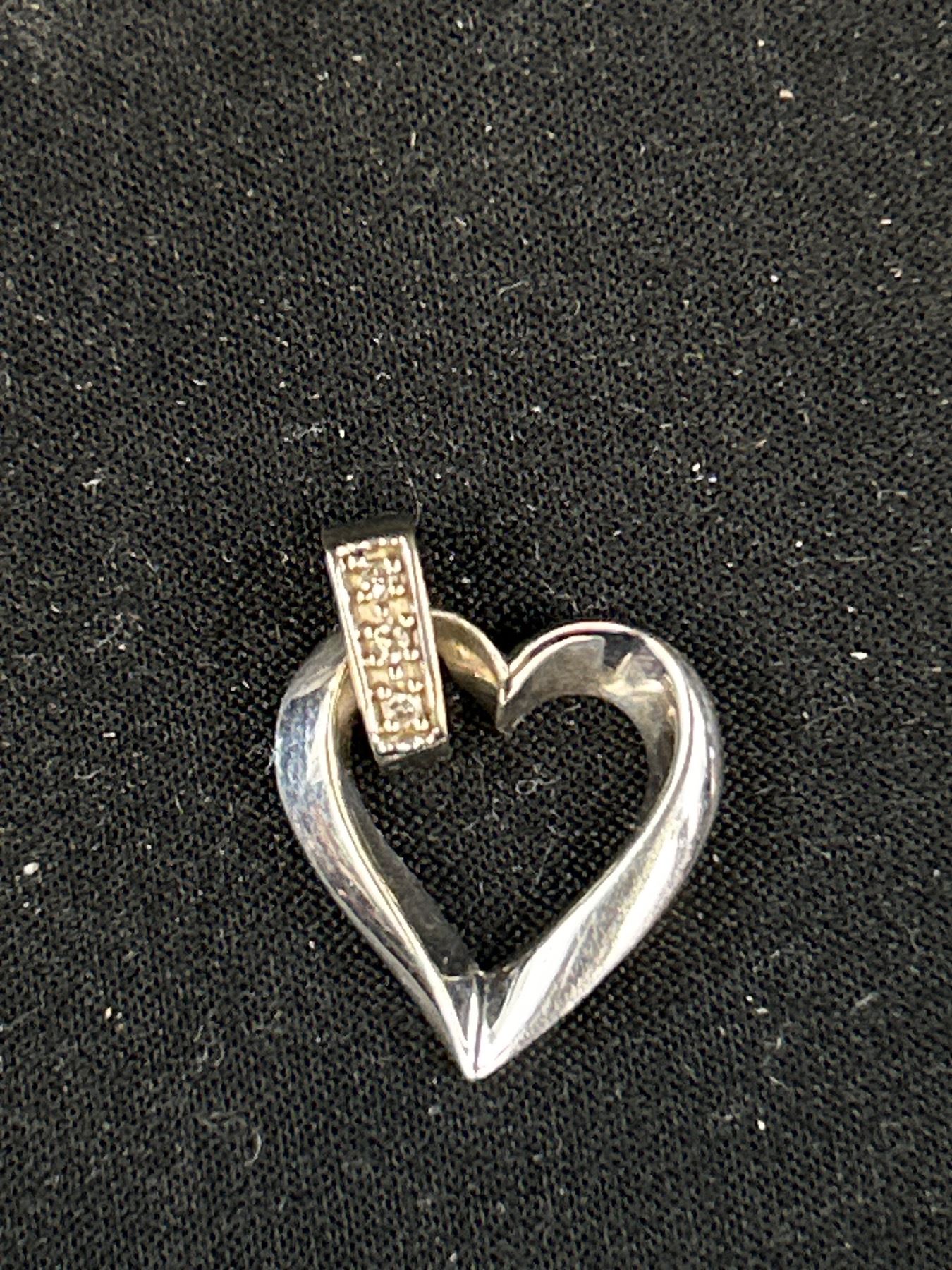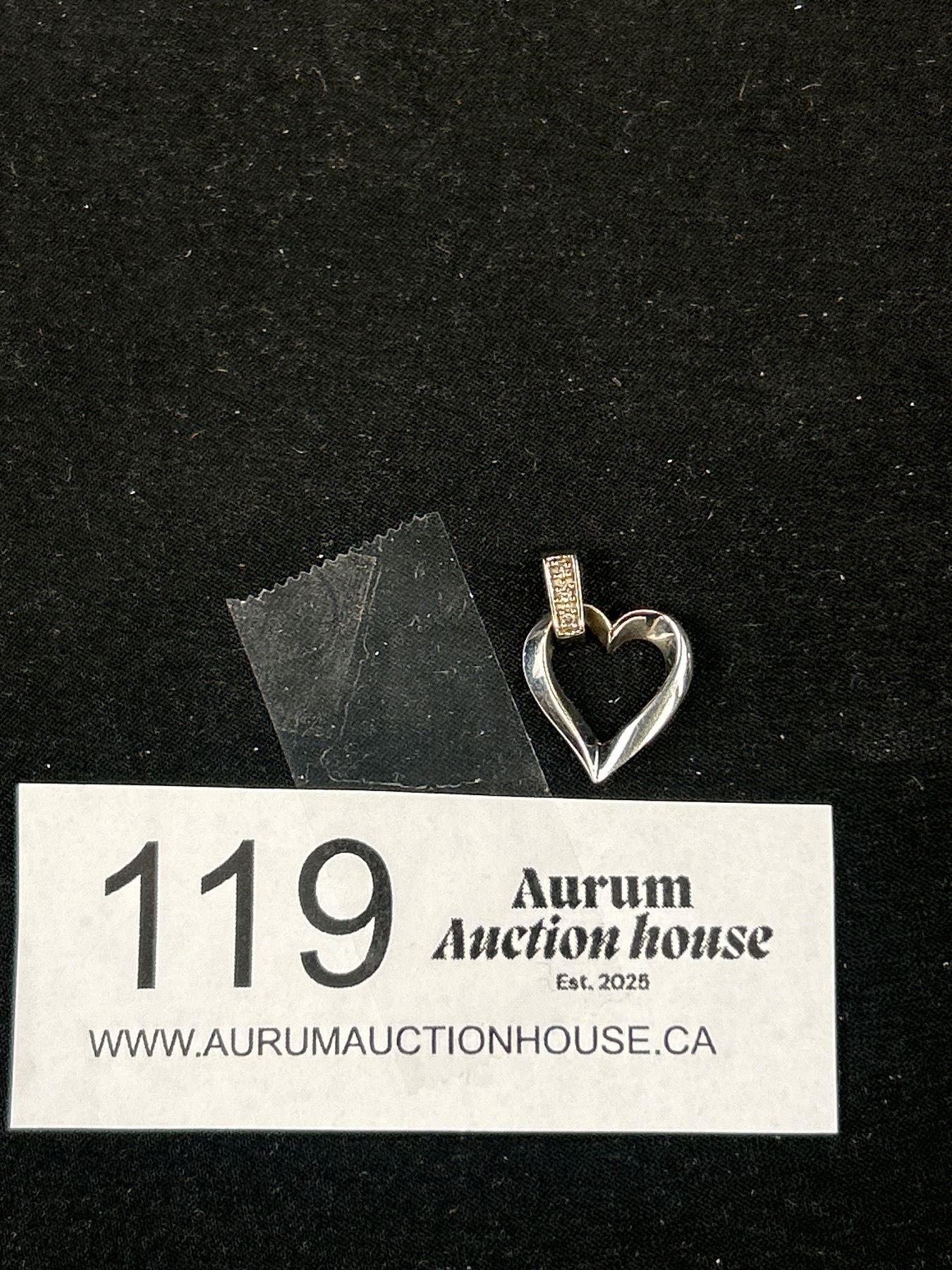 10KT White Gold Heart and Diamond Pendant- Nice Quality- Marked and Tested 2 Grams