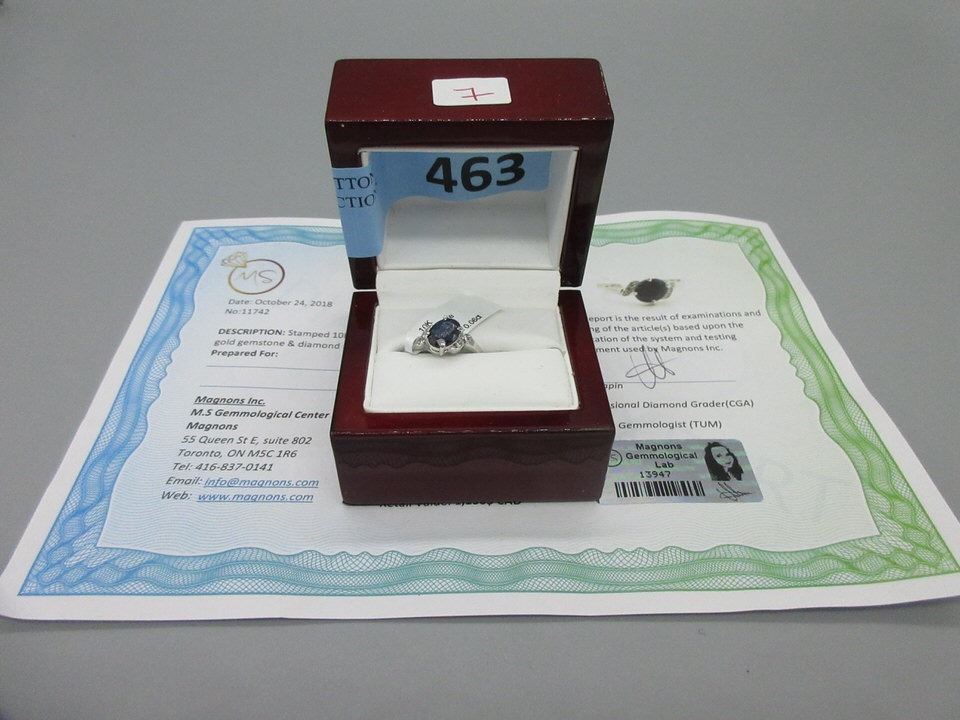 Size 6.5. Oval 1.5 Carat Sapphire with 6 side diamonds. Includes Certificate of Authenticity, and stated retail value of $1,150.