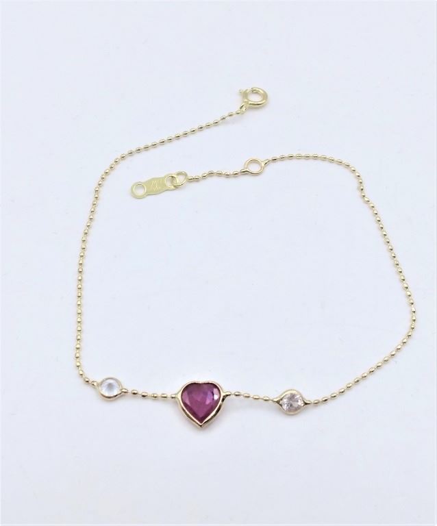 10KT. YELLOW GOLD 5.5MM X 5.5MM NATURAL RUBY (0.84CTS) & WHITE SAPPHIRE HEART BRACELET, W/A $1060.00
