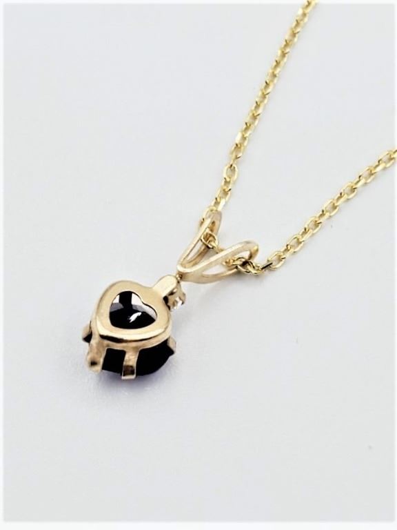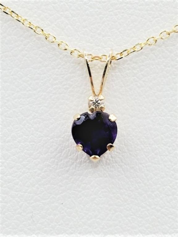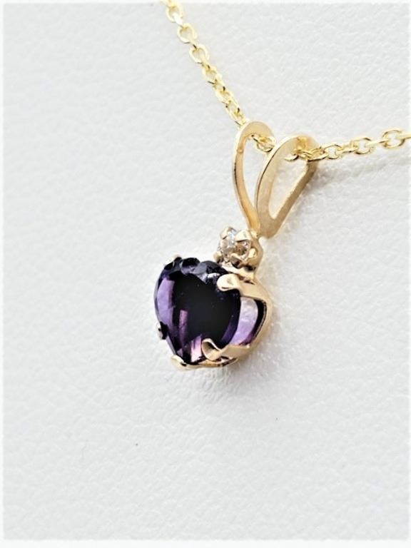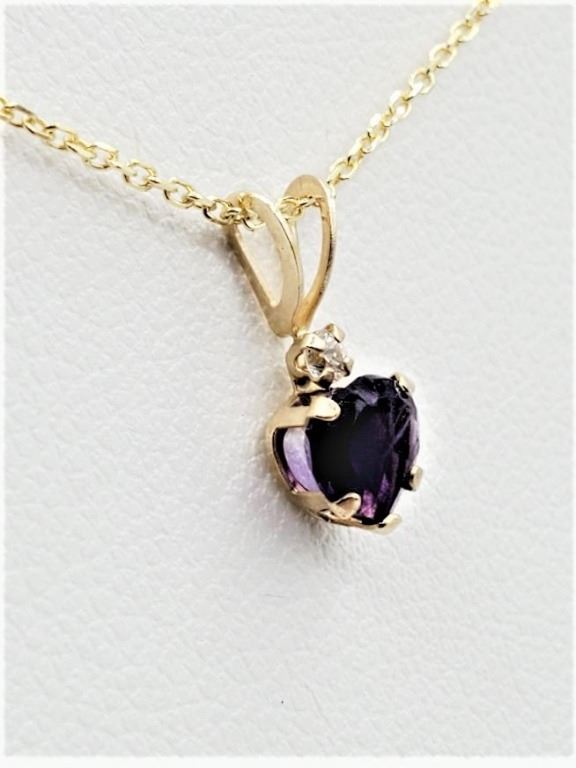 10KT. YELLOW GOLD 5MM NATURAL AMETHYST (0.88CTS) & WHITE SAPPHIRE HEART PENDANT WITH STERLING SILVER CHAIN, W/A $545.00