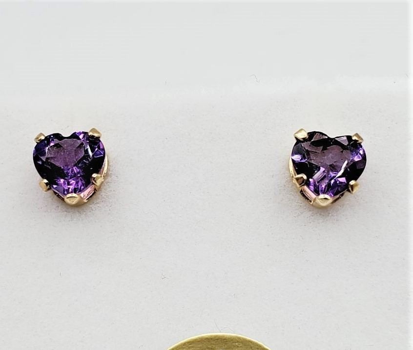 10KT. YELLOW GOLD 5MM NATURAL AMETHYST EARRINGS, 0.88CTS, W/A $375.00