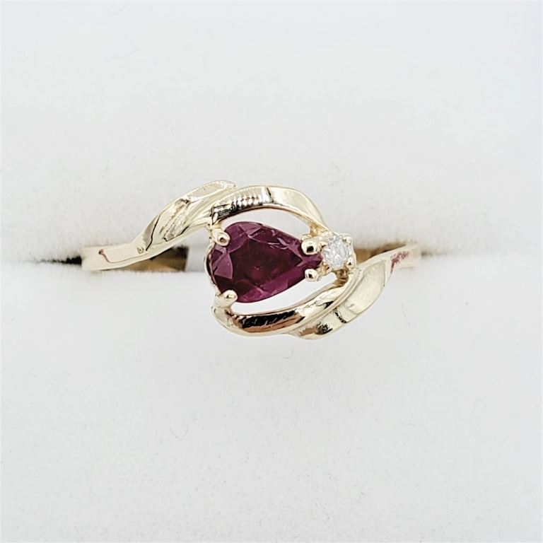 10KT. YELLOW GOLD 6MM X 4MM NATURAL RUBY (0.5CTS) & DIAMOND (0.01CTS) RING, W/A $910.00, SIZE 7