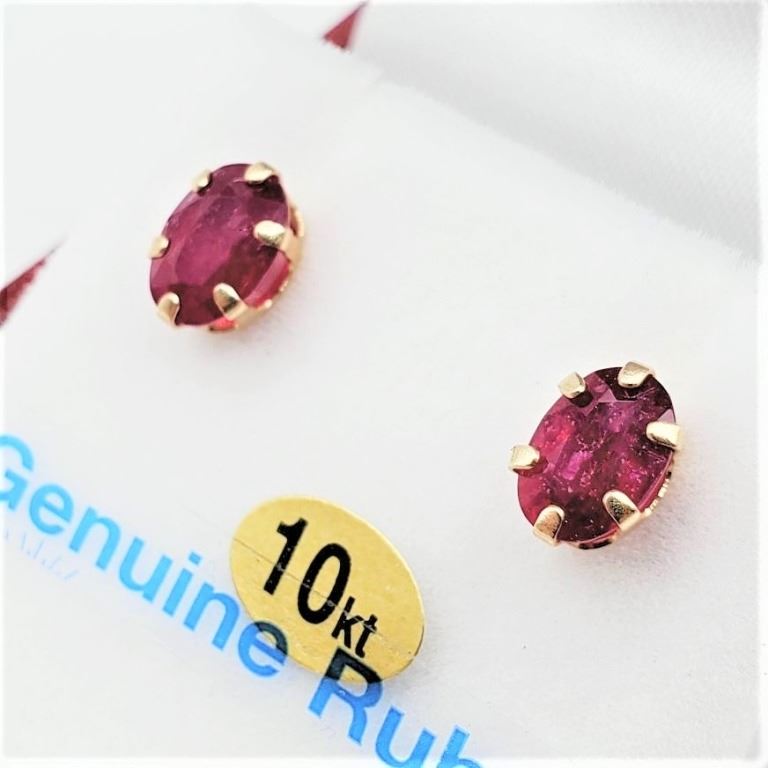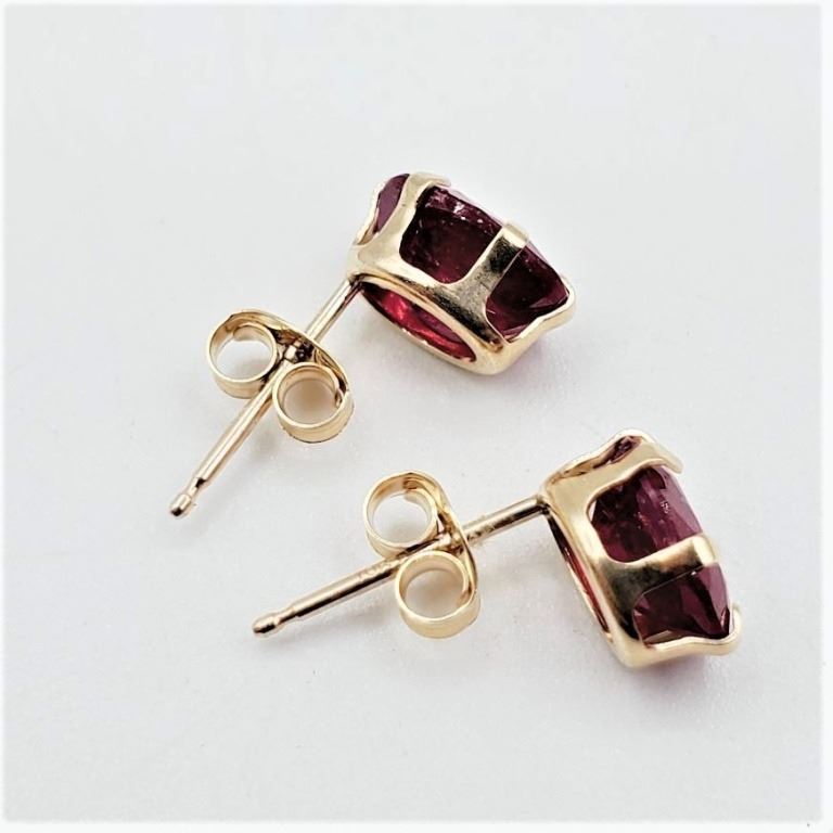 10KT. YELLOW GOLD 7MM X 5MM NATURAL ENHANCED RUBY STUD EARRINGS, 2.2CTS OF RUBY, W/A $765.00