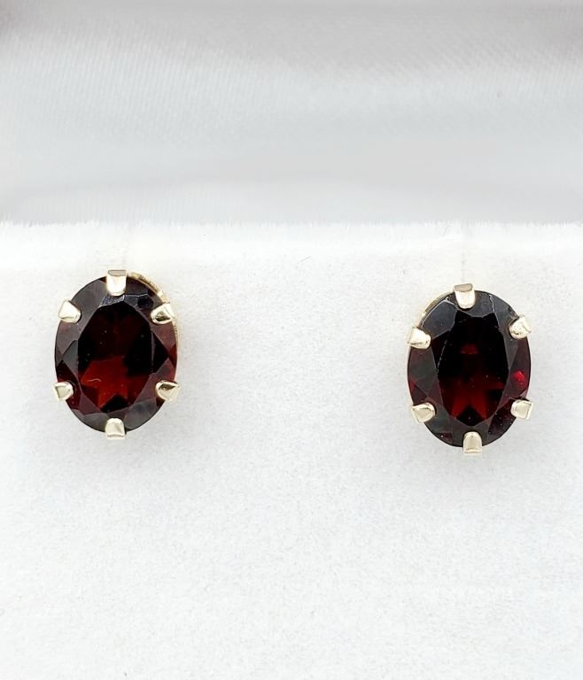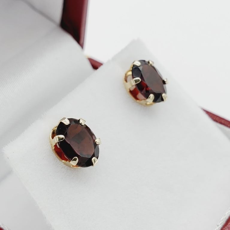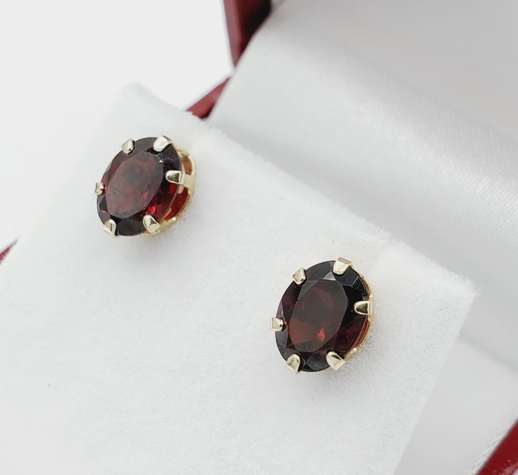 10KT YELLOW GOLD NATURAL GARNET (3.8CT) EARRINGS, RETAIL $500.00. GARNET IS THE BIRTHSTONE FOR JANUARY.