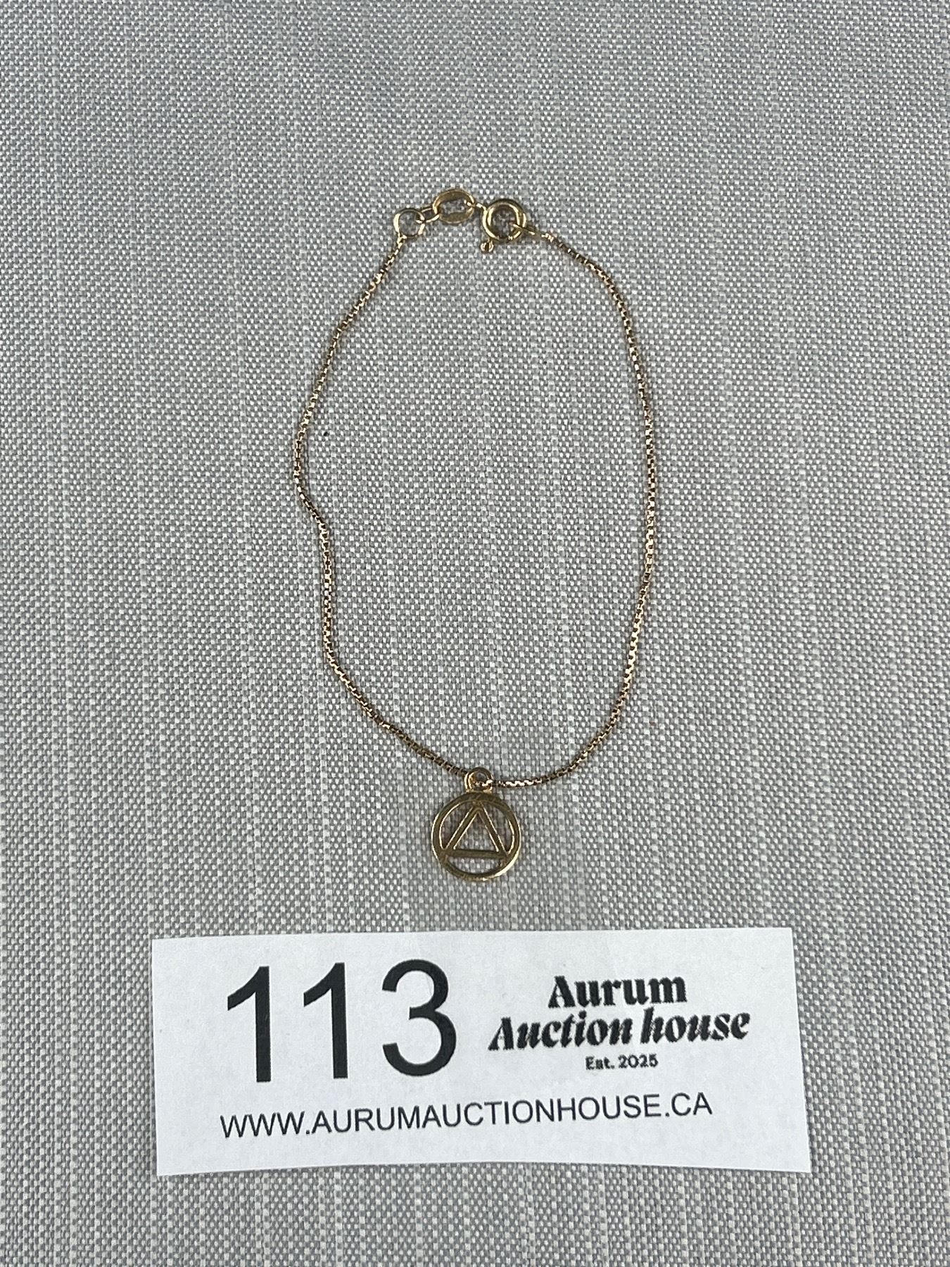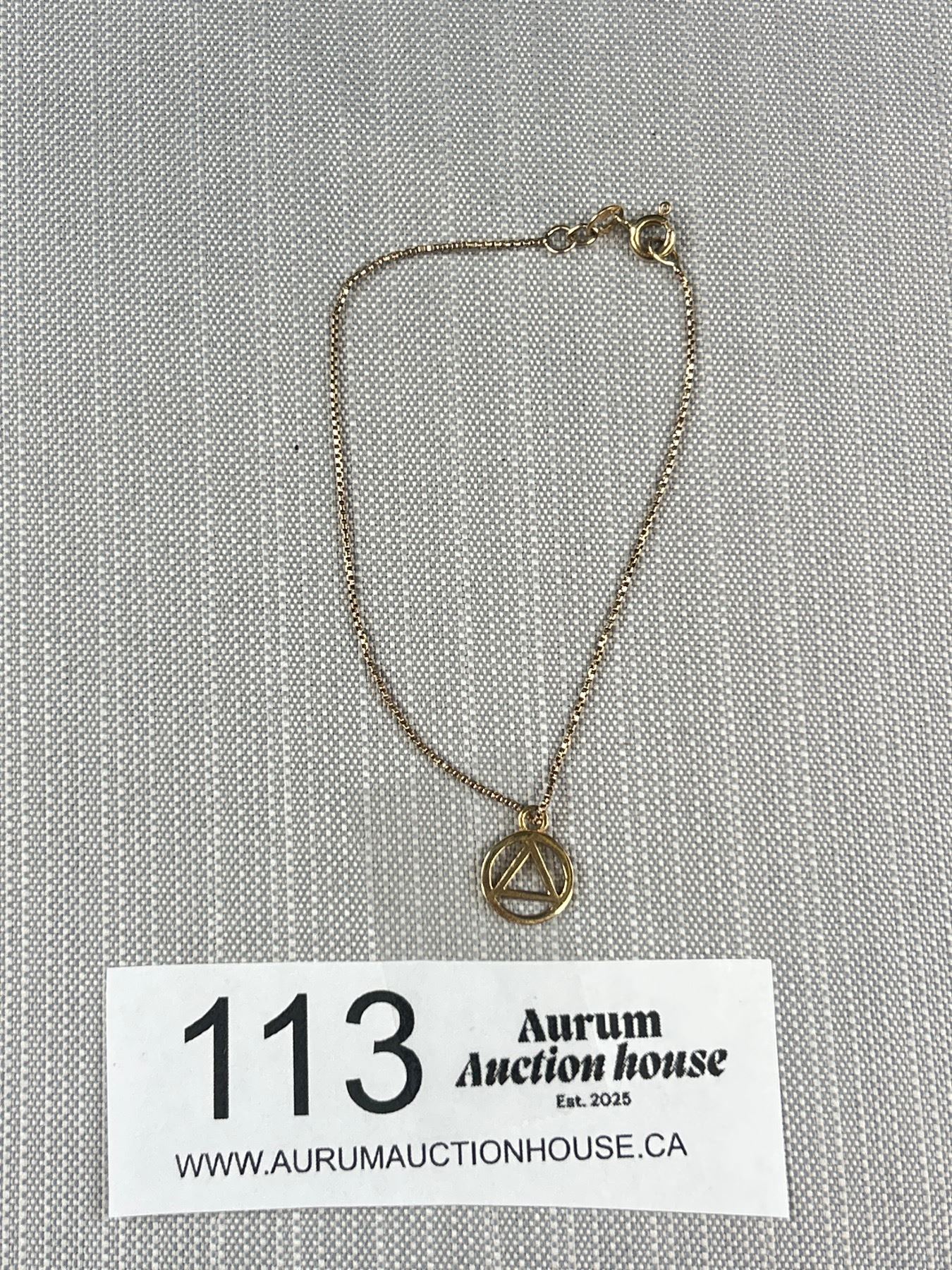 10KT Yellow Gold 7" Box Link Bracelet and Charm - Marked and Tested 1.8 Grams