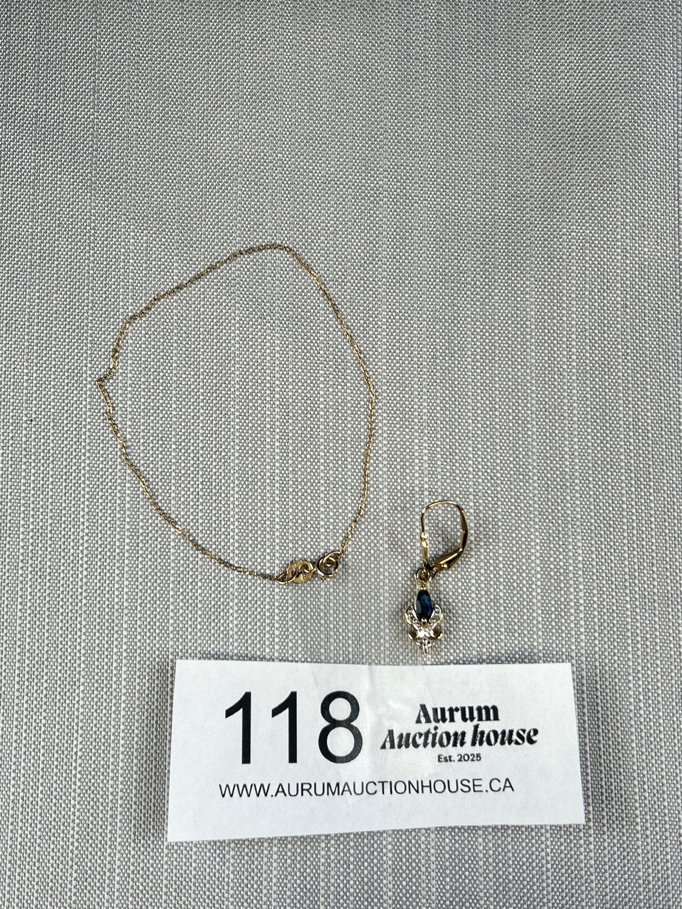 10KT Yellow Gold 7  Bracelet and Single Earring Which Could Be Made Into a Pendant - Marked and Test