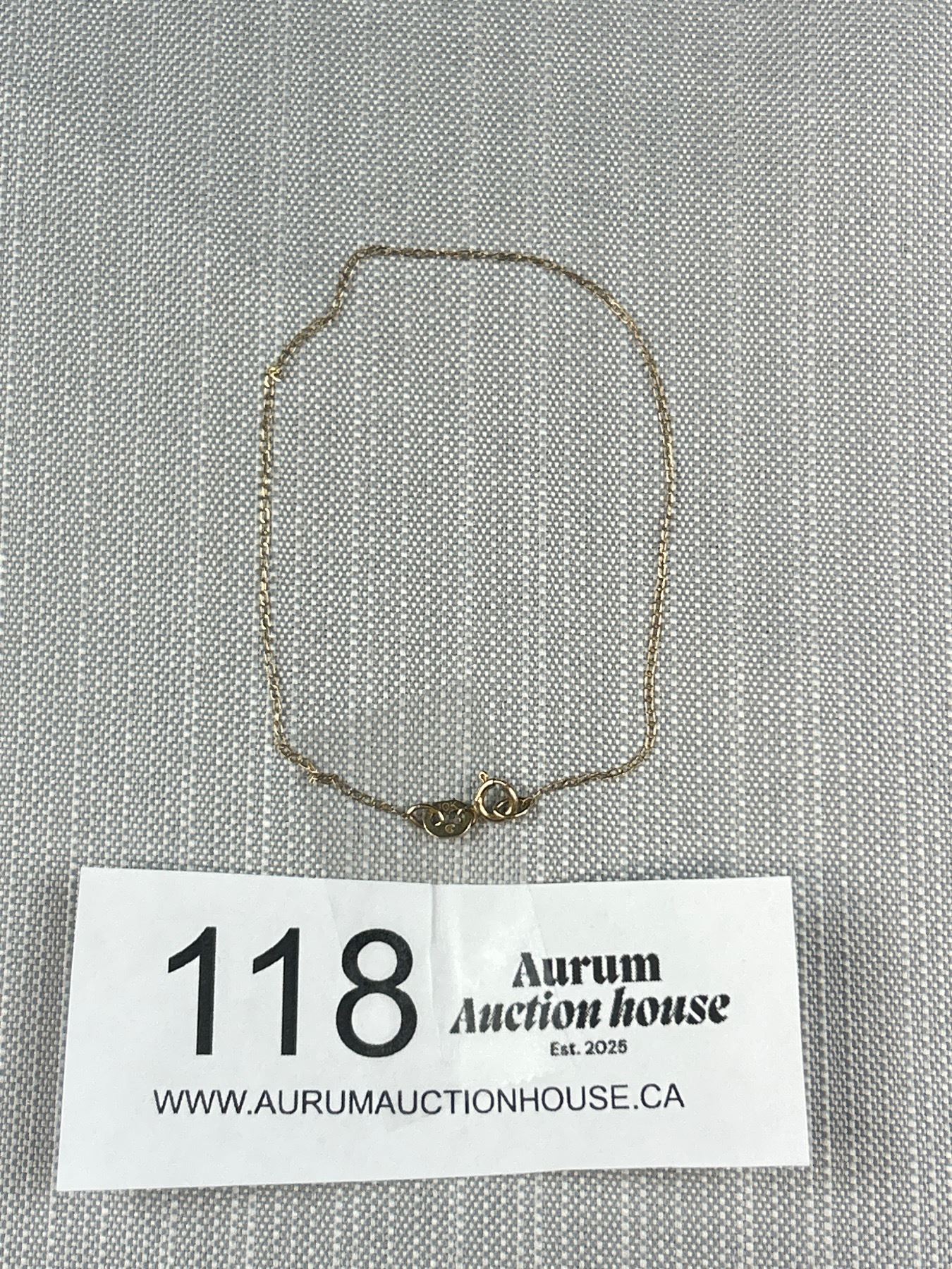 10KT Yellow Gold 7" Bracelet and Single Earring Which Could Be Made Into a Pendant - Marked and Tested 1.3 Grams