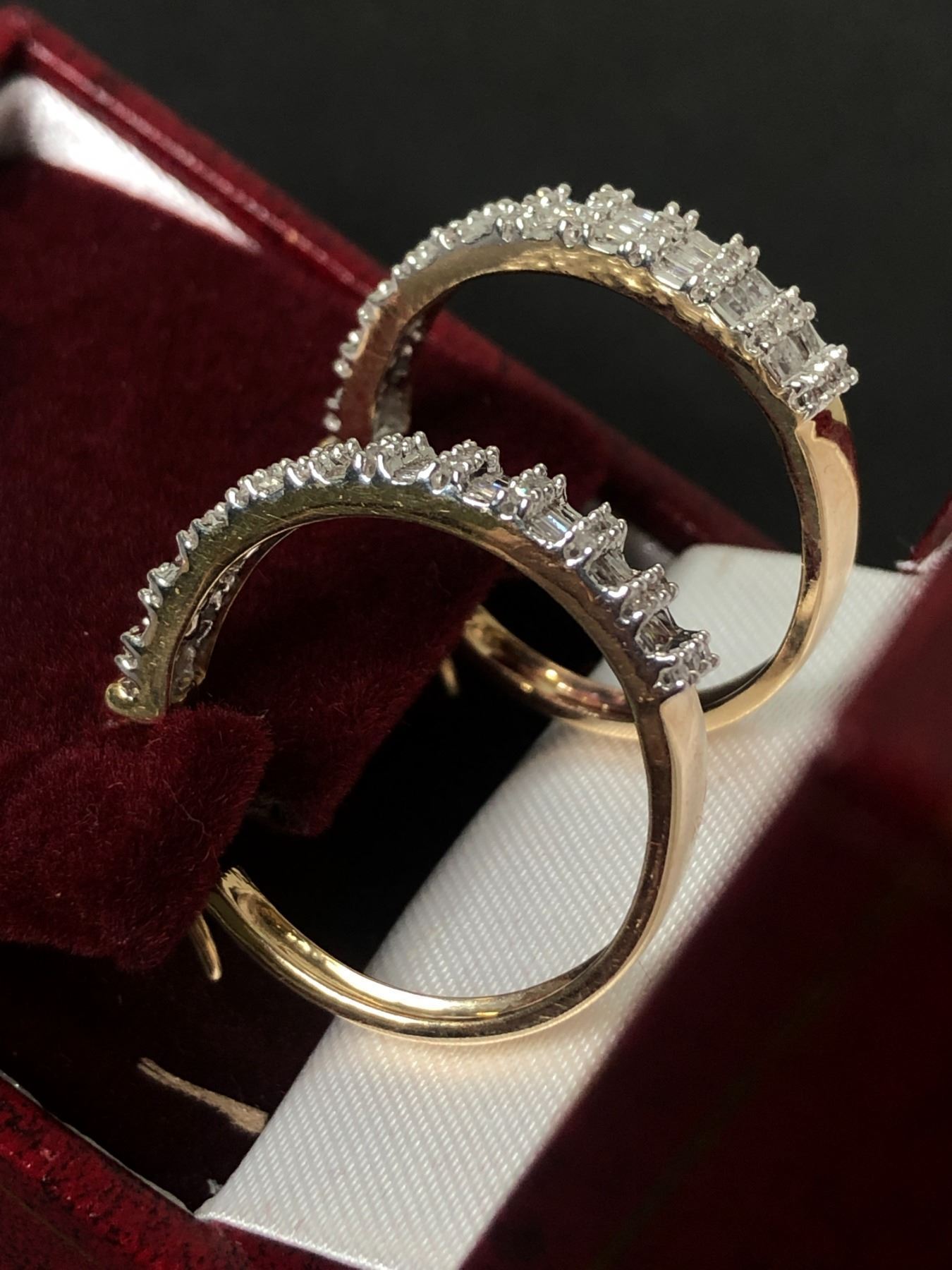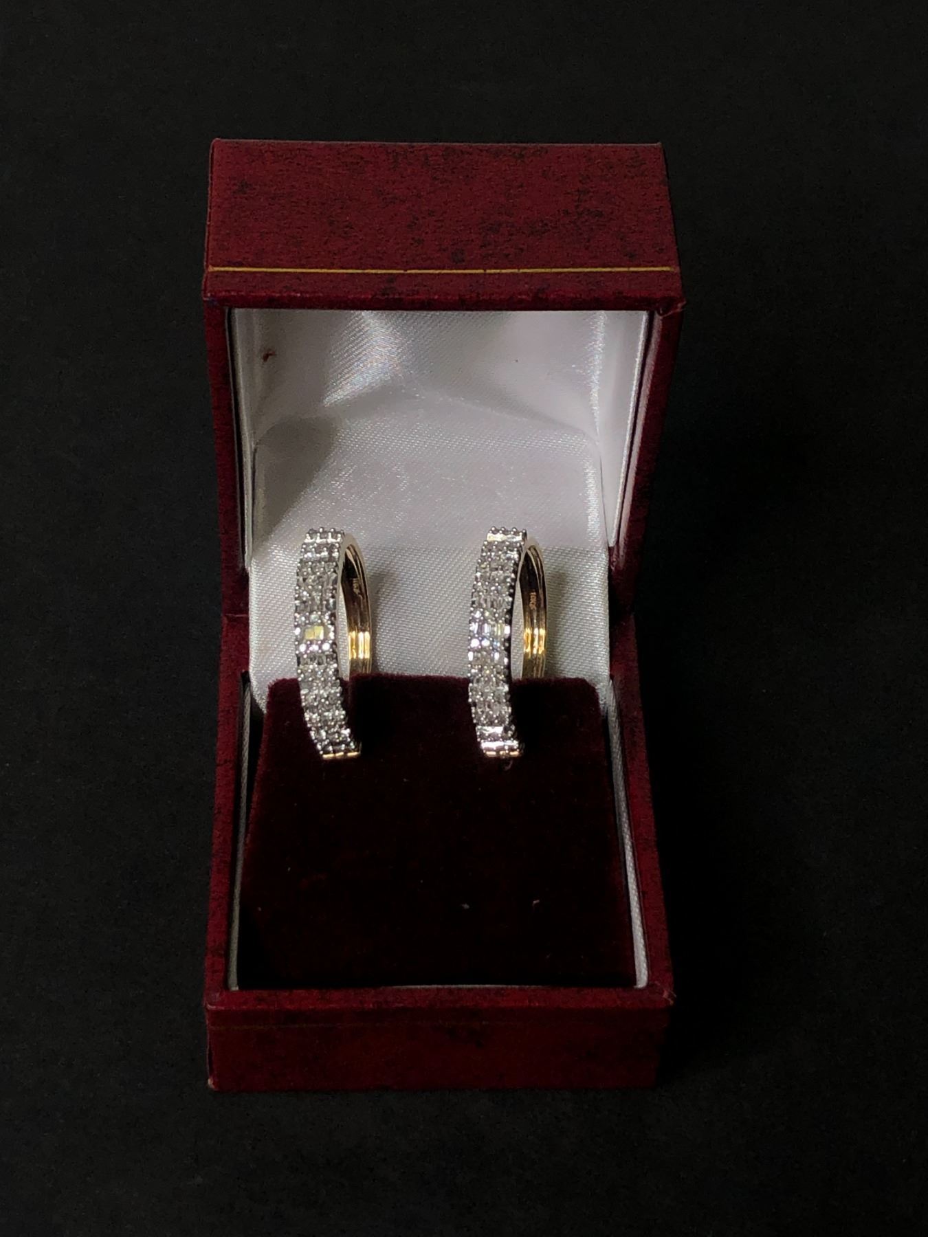 10Kt Yellow Gold Earrings (5.3 grams) w/0.75-carat diamonds (75 points/Natural Earth Mined Diamond) - Retails $1150 art auction