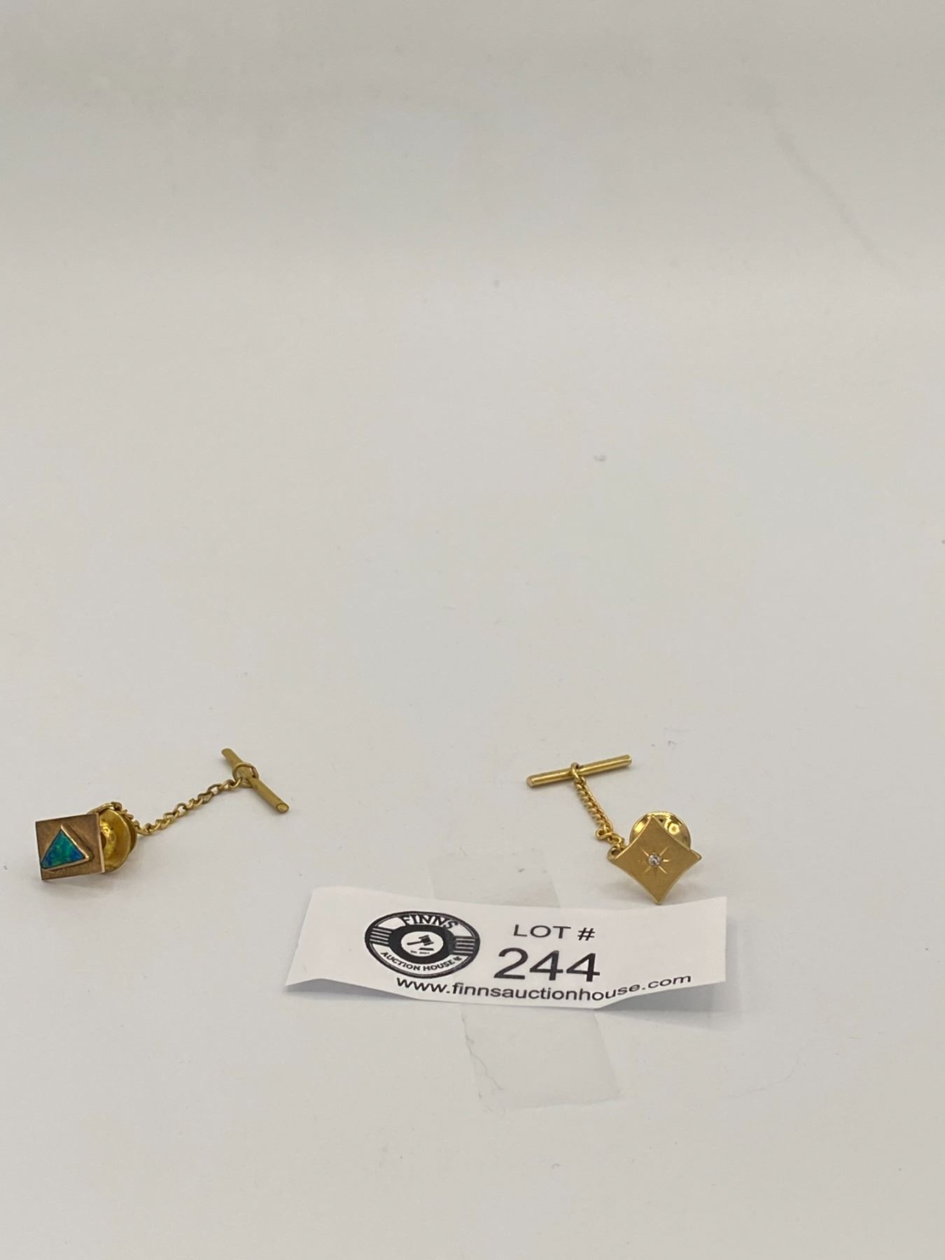 10k Opal Tie tac and Gold Filled Real Diamond tie Tac