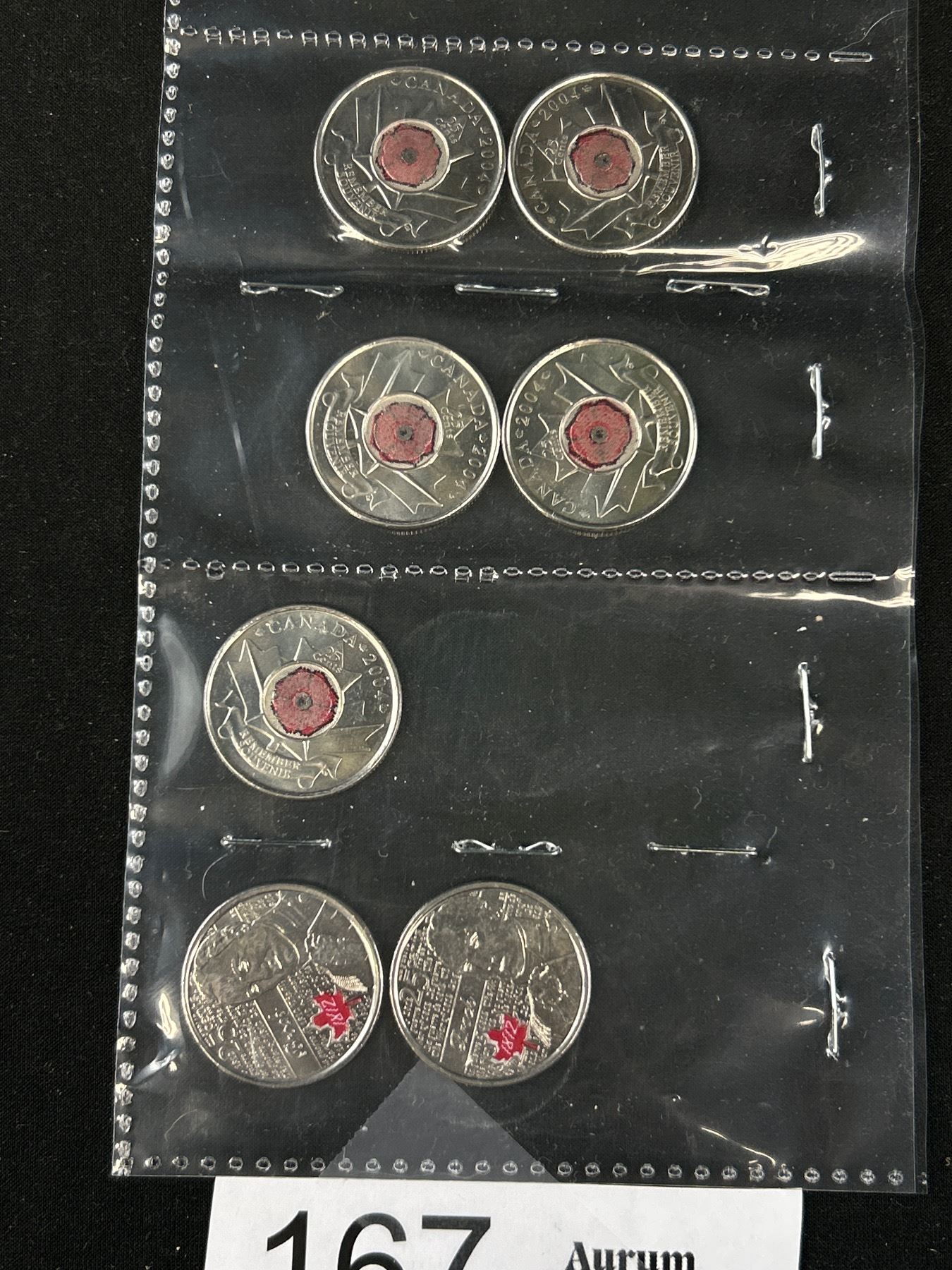 11 2004, 2006, 2012 25 Cent CDN Coins All Coloured