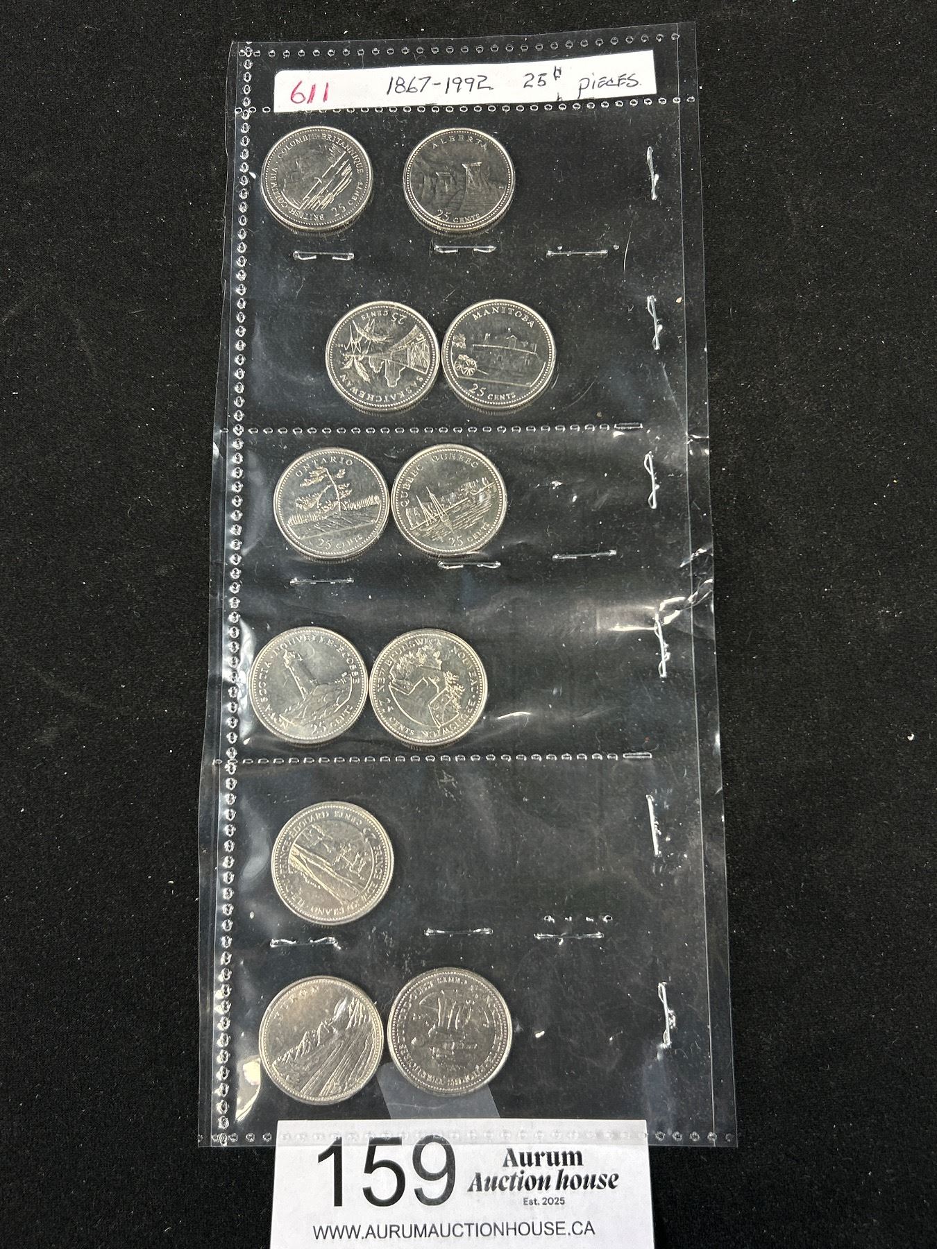 11 25 Cent CDN Coins, 1867-1992 All Different