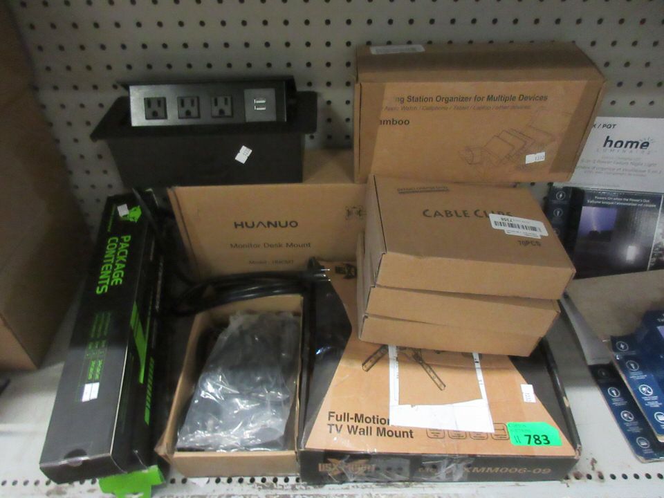 TV Wall mount, mouse pads, USB power bars, cable clips & more