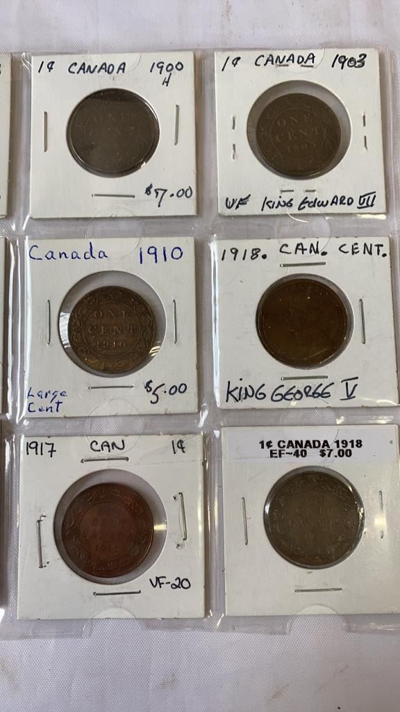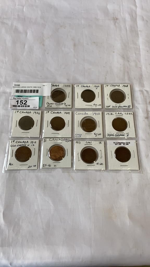 11 CANADIAN LARGE CENTS 1888-1918 VICTORIA, EDWARD VII, GEORGE V